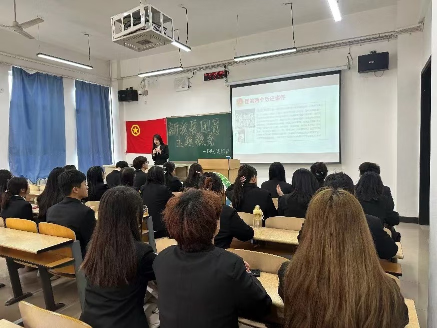 活动伊始,团总支组织部副部长刘晓璇以生动的语言和丰富的历史资料,带领全体新团员回顾了中国共青团的重要历史事件。她深入浅出地讲解了五四运动和一·二九运动的时代背景、主要经过及其历史意义,强调了青年在国家危难时刻所展现的先锋作用和爱国热情。刘晓璇指出,共青团作为中国共产党领导下的先进青年组织,肩负着传承红色基因、推动社会主义现代化的重要任务。她强调,新时代团员应在思想、学习、工作、生活等方面严格要求自己,发挥先锋模范作用,明确自身肩负的责任和使命。