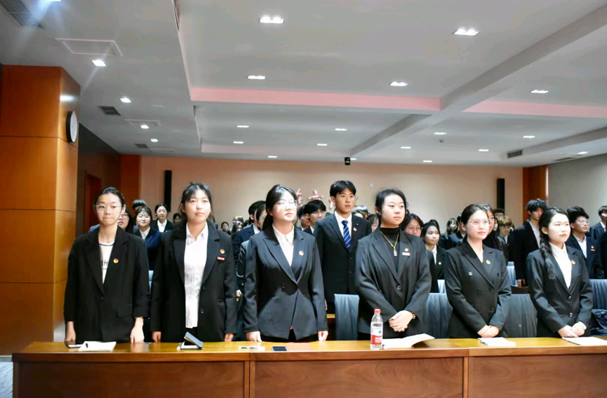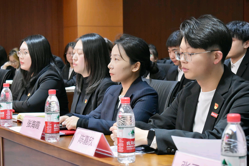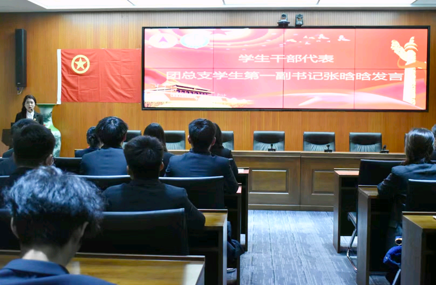 学生干部代表团总支学生第一副书记张晗晗发言:学生干部不仅是学生群体中的一员,更是连接学校与学生的桥梁和纽带。我们需尽快适应角色转变,肩负起责任和使命。坚定信念,明确方向,以一名学生干部的标准来要求自己。星光不负赶路人,时代致敬奋斗者。我们要珍惜当下,以“时不待我、只争朝夕”的昂扬姿态,拿出“成功不必在我、成功必定有我”的境界,做走在时代前列的奋进者、开拓者、奉献者。“路虽远,行则将至;事虽难,做则必成。”让我们以满腔热情和坚定的信念投入到本次会议,以及之后的学习工作中来,共同书写属于我们的璀璨华章。