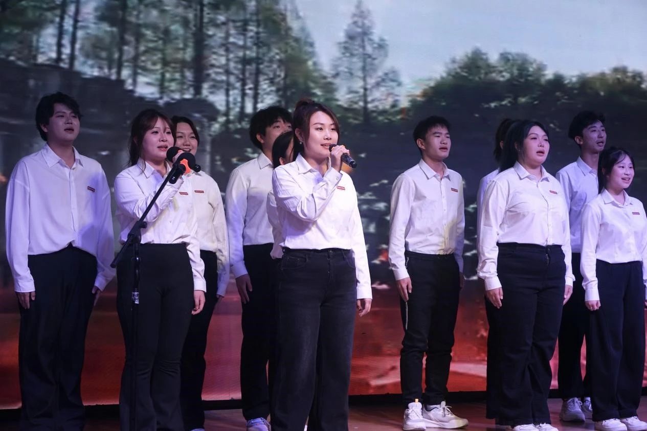 紧接着,环境与健康学院合唱团带来了合唱《今天是你的生日》。这首歌曲充满了对祖国的热爱和祝福。当悠扬的歌声响起,整个会场仿佛被浓浓的爱国情怀所笼罩。就像歌词中所表达的那样,无论身处何地,每一个中华儿女都心系祖国。