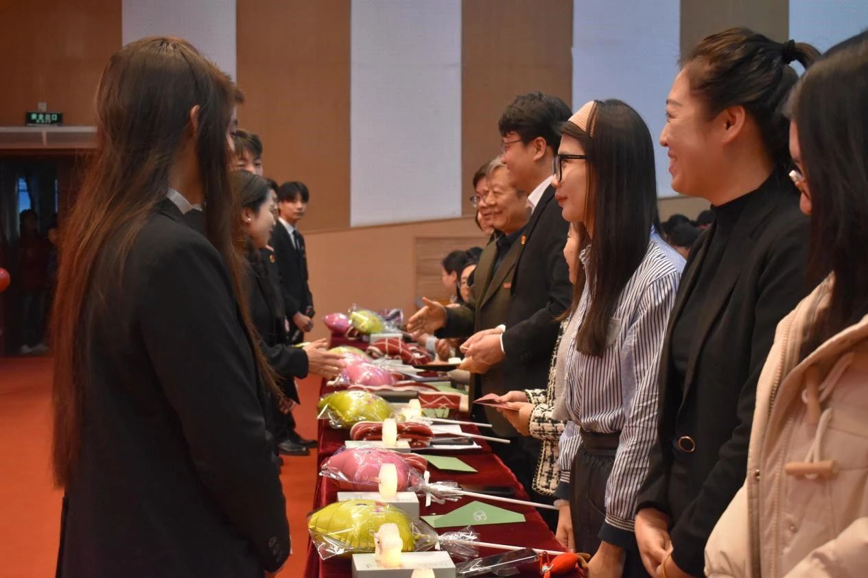 谢师礼环节是整个大会中最具温情的部分。学生们向老师们献上精心准备的信,表达对老师们辛勤付出的感谢。“新竹高于旧竹枝,全凭老干为扶持”学生的成长离不开老师的教导,也正是学院对全体师生的期望。