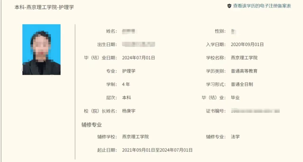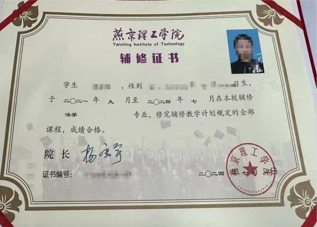 8、考核与证书发放:修满规定学分,颁发燕京理工学院辅修证书,达到学士学位授予条件的,可授予辅修专业学士学位,辅修学位证书学信网可查。