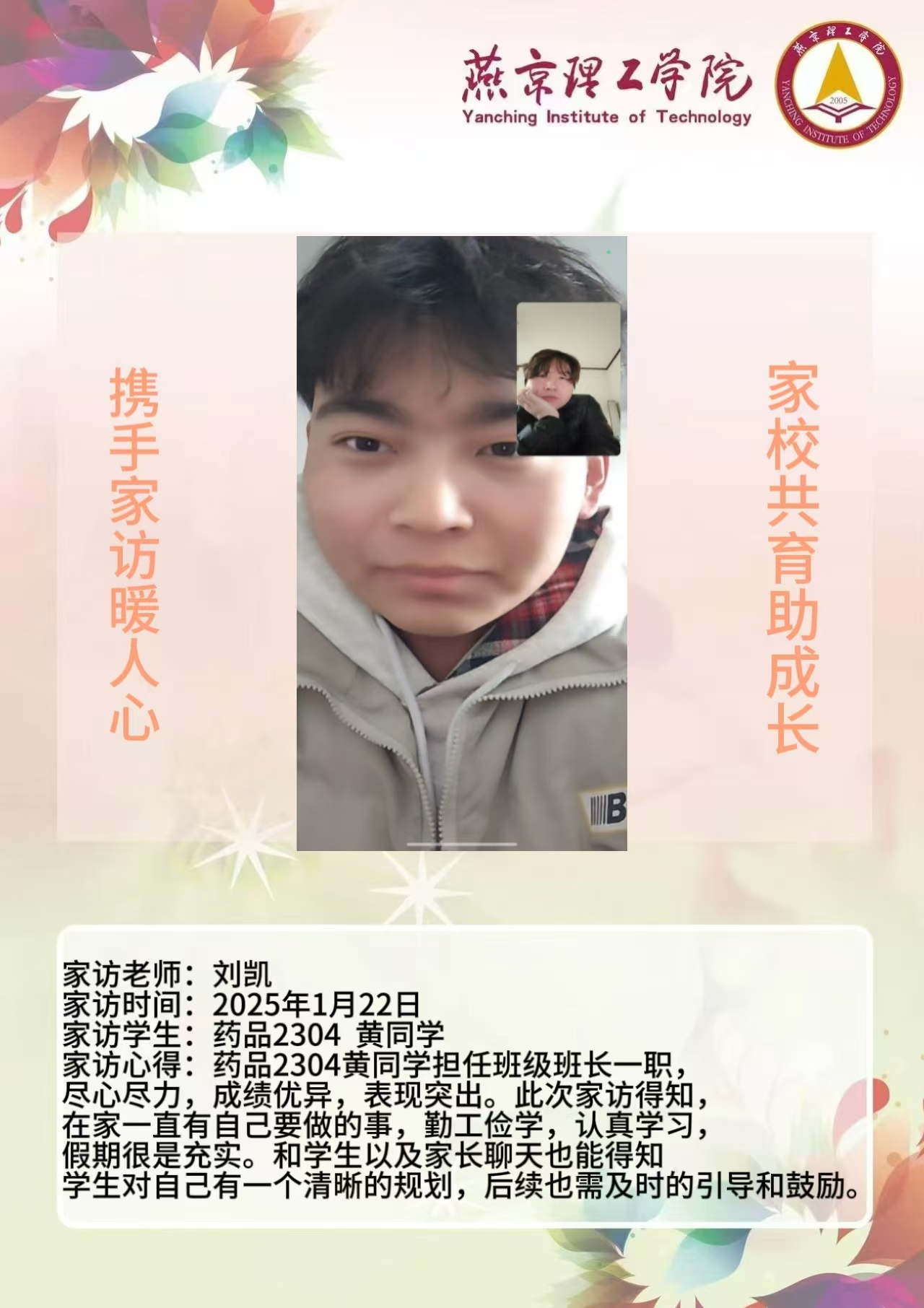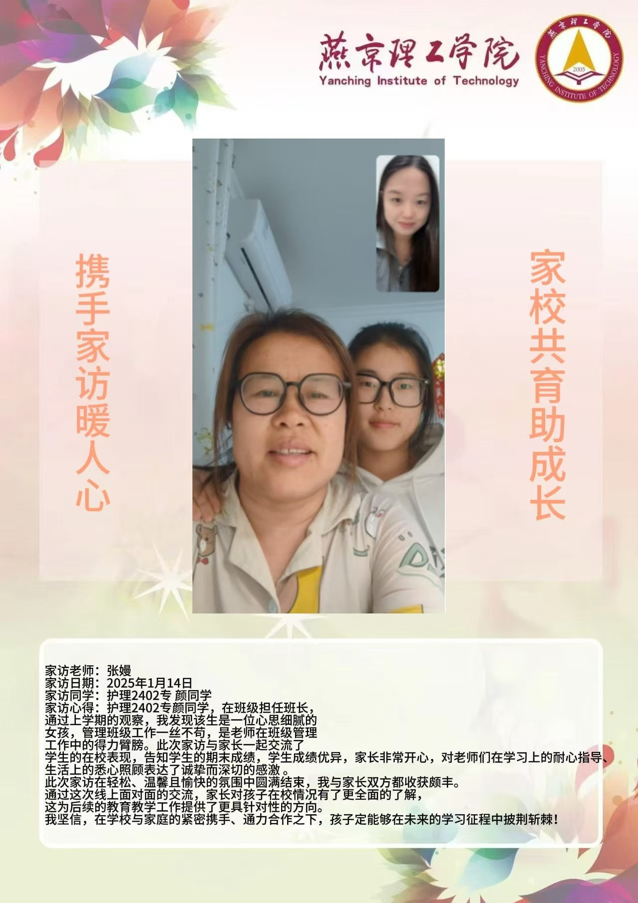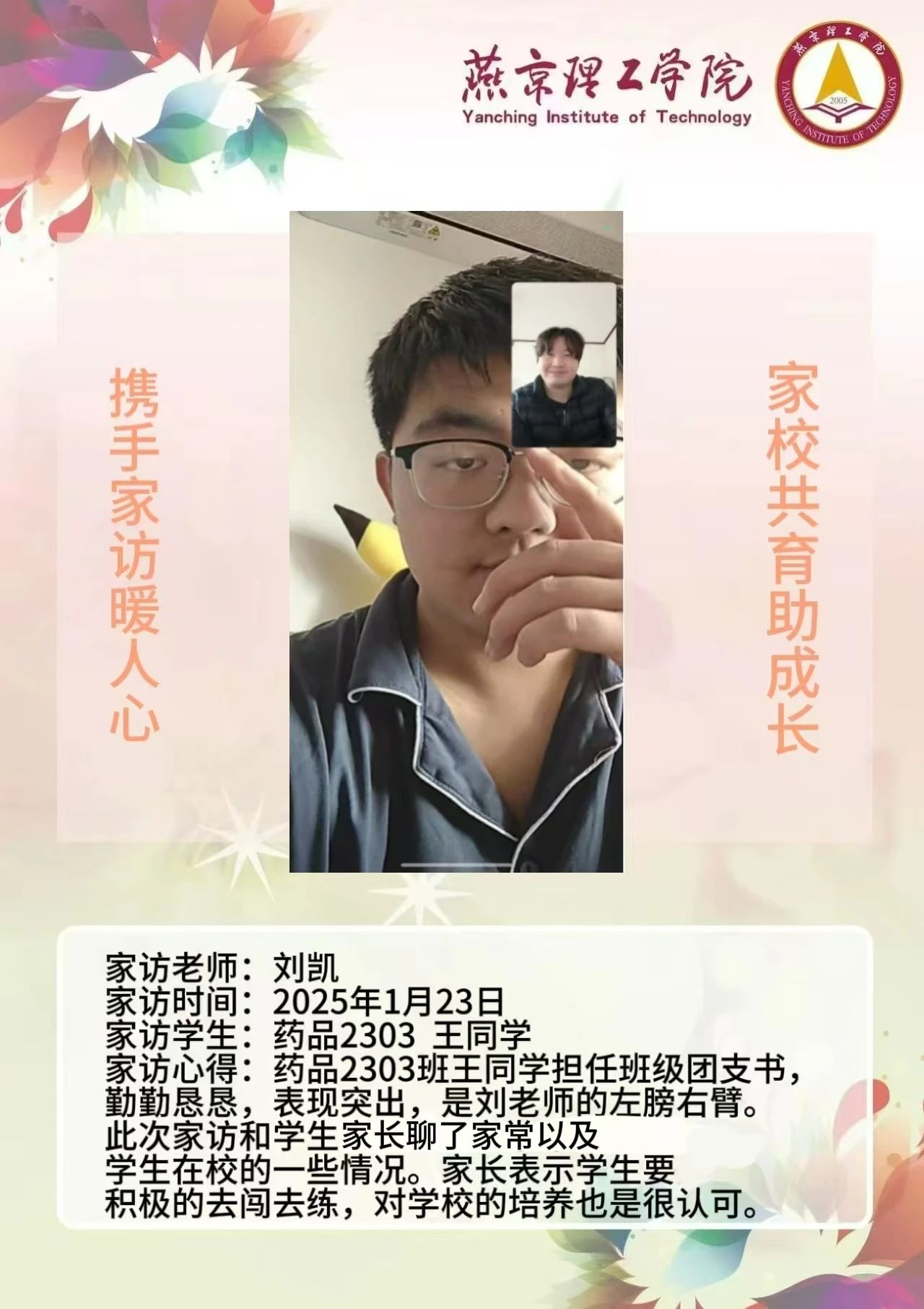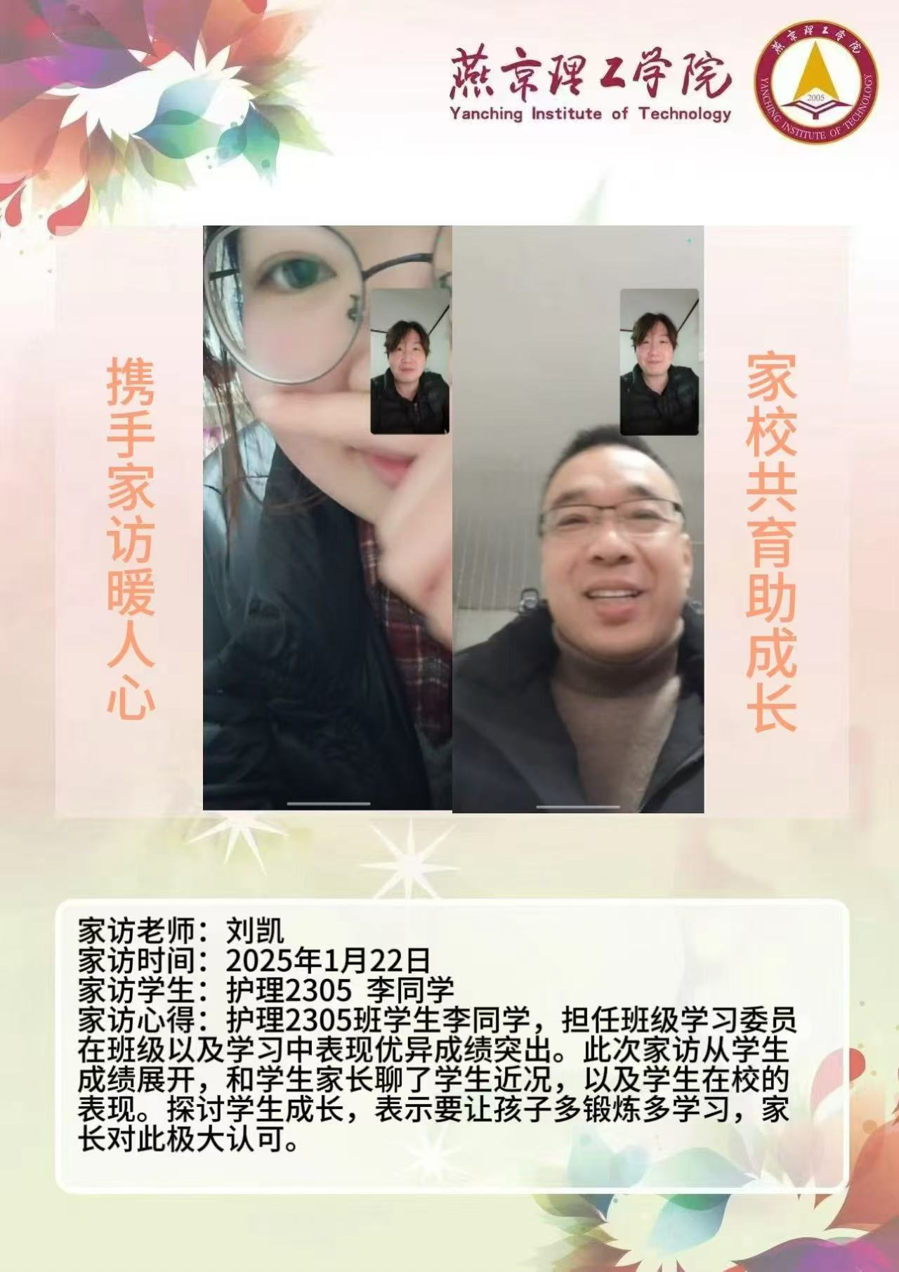 此次“大家访”活动是落实育人方针的关键举措,不仅搭建起家校沟通的稳固桥梁,更整合了校内外教育资源,构建起紧密联动的育人格局。未来,学院将持续深化家访成果,定期复盘经验,优化家访流程,确保家访工作常态化、高效化开展。同时,进一步挖掘家庭与社会资源,创新家校共育活动形式,打造更为完善的育人体系,全方位提升人才培养质量,为学生成长成才筑牢根基,在契合教育发展新形势的道路上稳步前行,培养出更多适应时代需求的优秀人才。