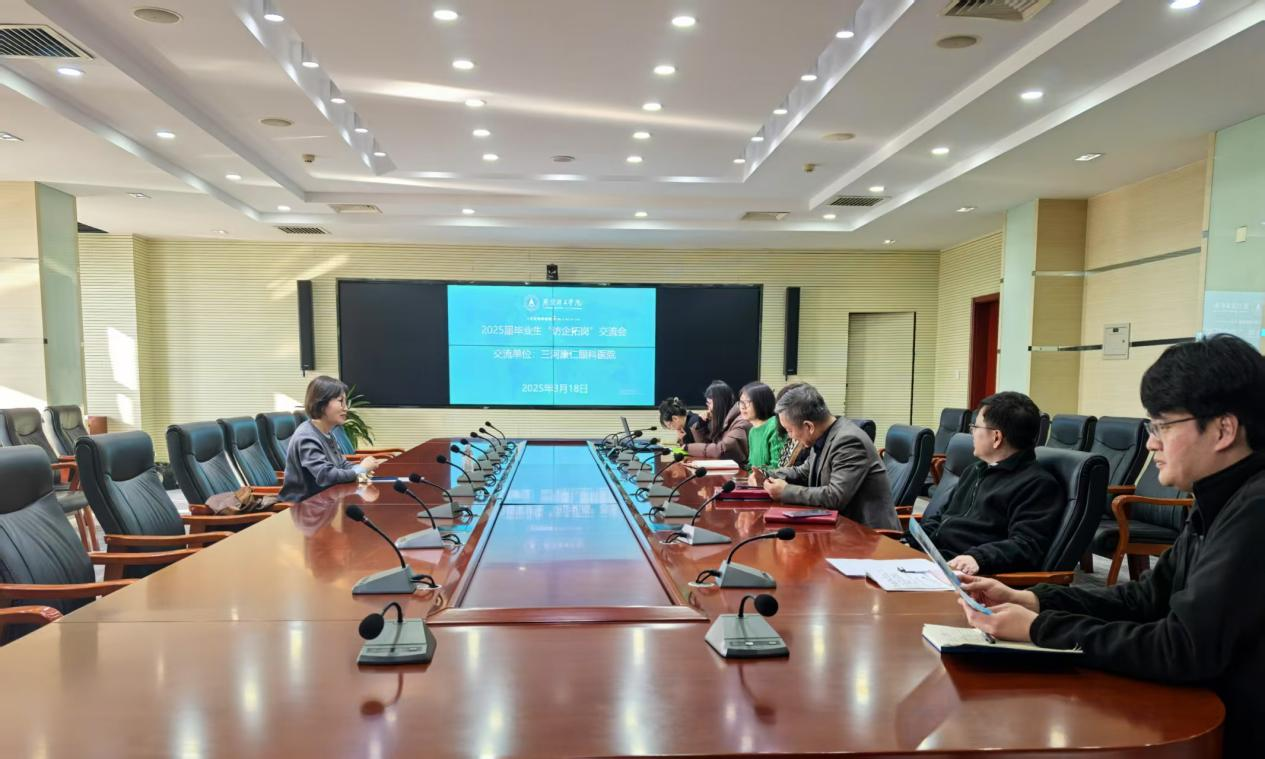 为深入贯彻落实党中央、国务院关于高校毕业生就业工作的决策部署,深化校企交流合作,拓宽毕业生就业渠道,三河康仁眼科医院与我院深度交流,环境与健康学院院领导、专业负责人代表、毕业班辅导员老师代表参与交流会。