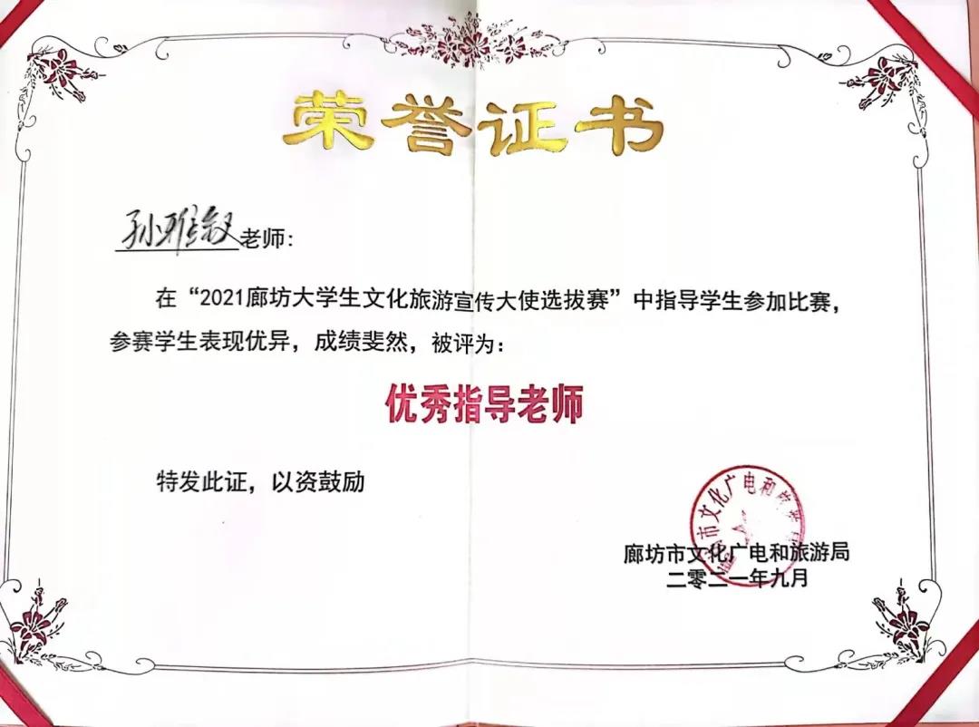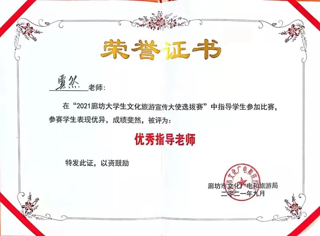 生命与健康学院教师在指导学生参加廊坊大学生文化旅游宣传大使选拔赛中获奖
