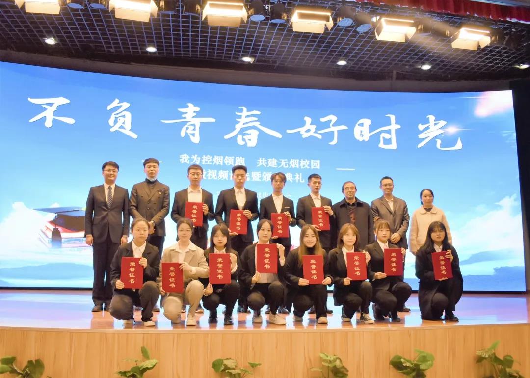 随后,礼仪部为微视频获奖学生进行颁奖。获奖的同学纷纷表示:“大学生是时代的先锋,是祖国的未来。为了自己、家人和社会,学生应自觉维护自身良好形象,要让教室、宿舍、操场、卫生间等公共场所不再乌烟瘴气,我们也要为控烟领跑,共创无烟校园。”