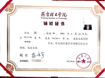 8、考核与证书发放:修满规定学分,颁发燕京理工学院辅修证书,达到学士学位授予条件的,可授予辅修专业学士学位,辅修学位证书学信网可查。