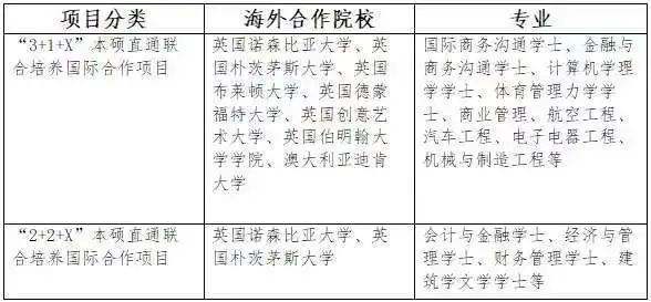 (1)“3+1+X”本硕直通 国内高校学习3年,国外高校学习1年后,获得国外高校学士学位,可直接申请国外硕士课程,最短1年获得硕士学位。