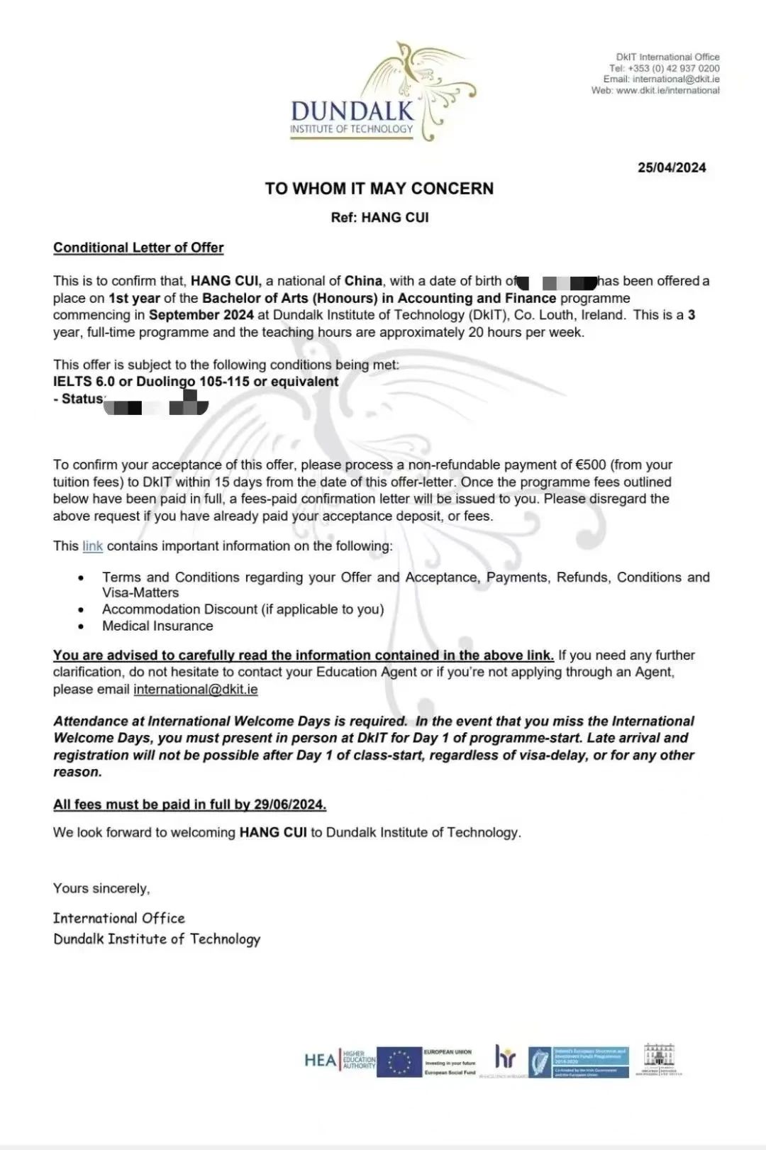注:学生需出示雅思或其它官方成绩单原件,以及最终入读 QSTop150海外院校,方可申请获得奖学金,从2024年5月6日开始实施。