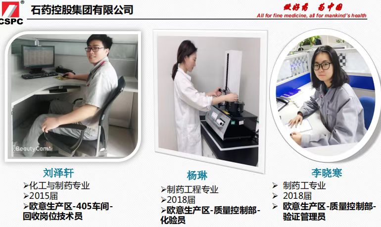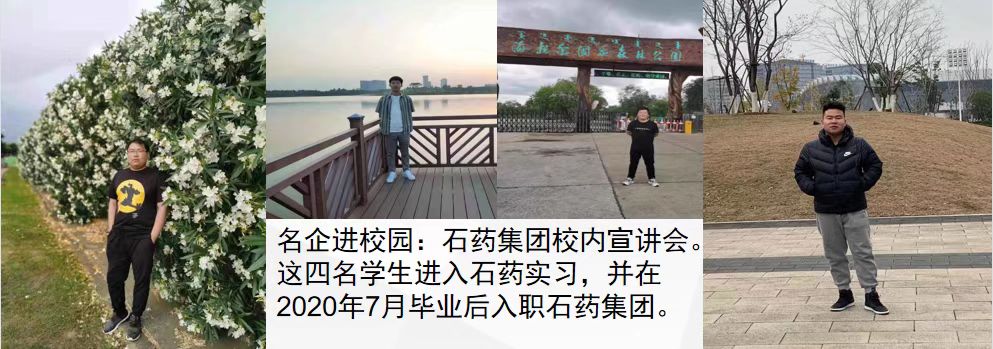 石药集团是本专业优质就业基地。每年均有部分学生到石药集团实习和就业。此外,还有一些同学在华润双鹤药业、天士力医药集团股份有限公司等知名药企工作。