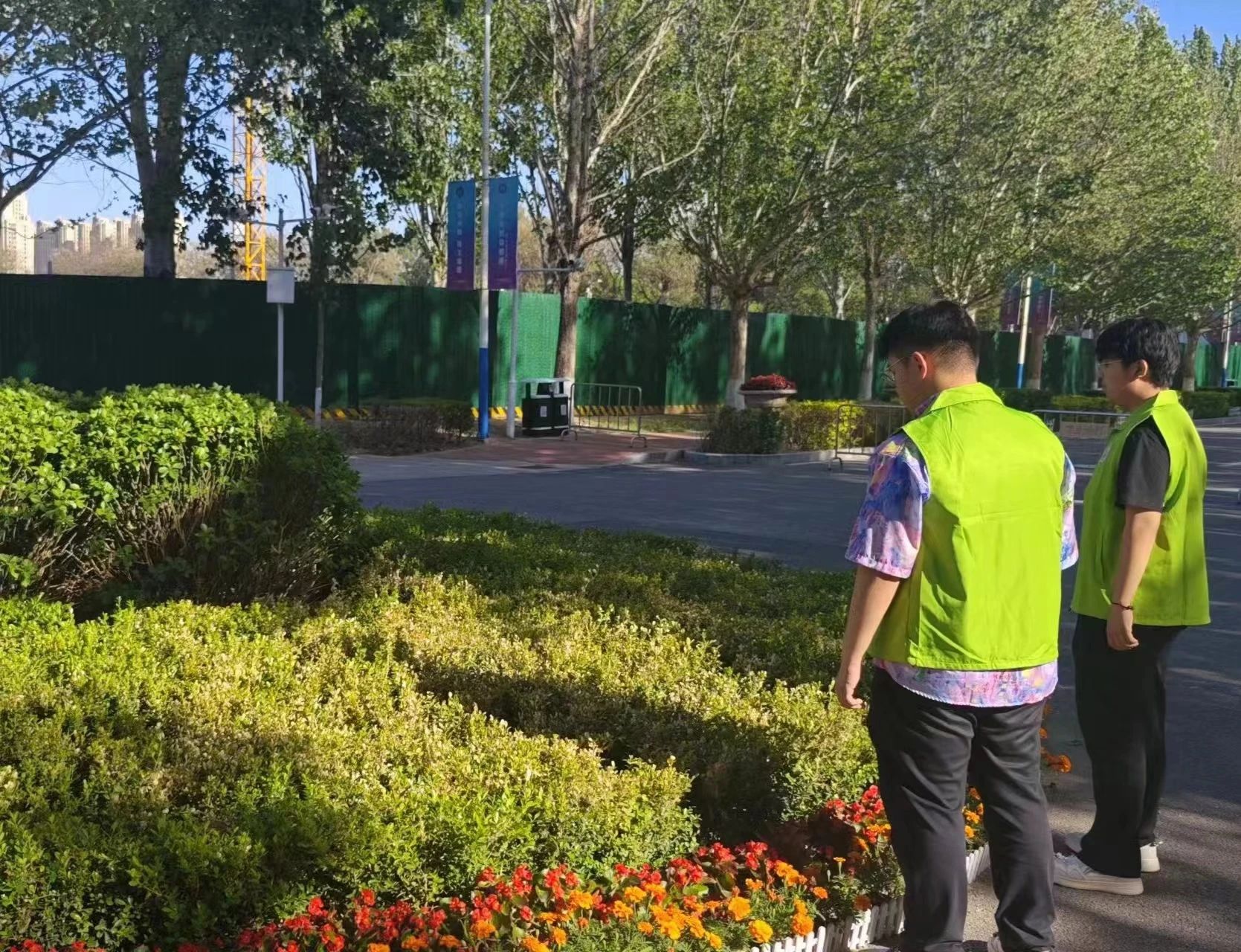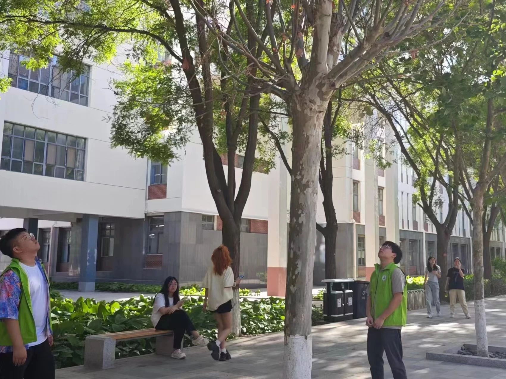 检查过程中,“学生考官”对发现的绿植枯萎、生长态势不好的情况做出了详细的记录,并对过往同学们进行了随机采访,了解同学们所期盼的校园美景,将同学们提出的好的建议想法记录下来,为打造受大家热枕和喜爱的校园美景,从同学们的角度出发打开了新思路。