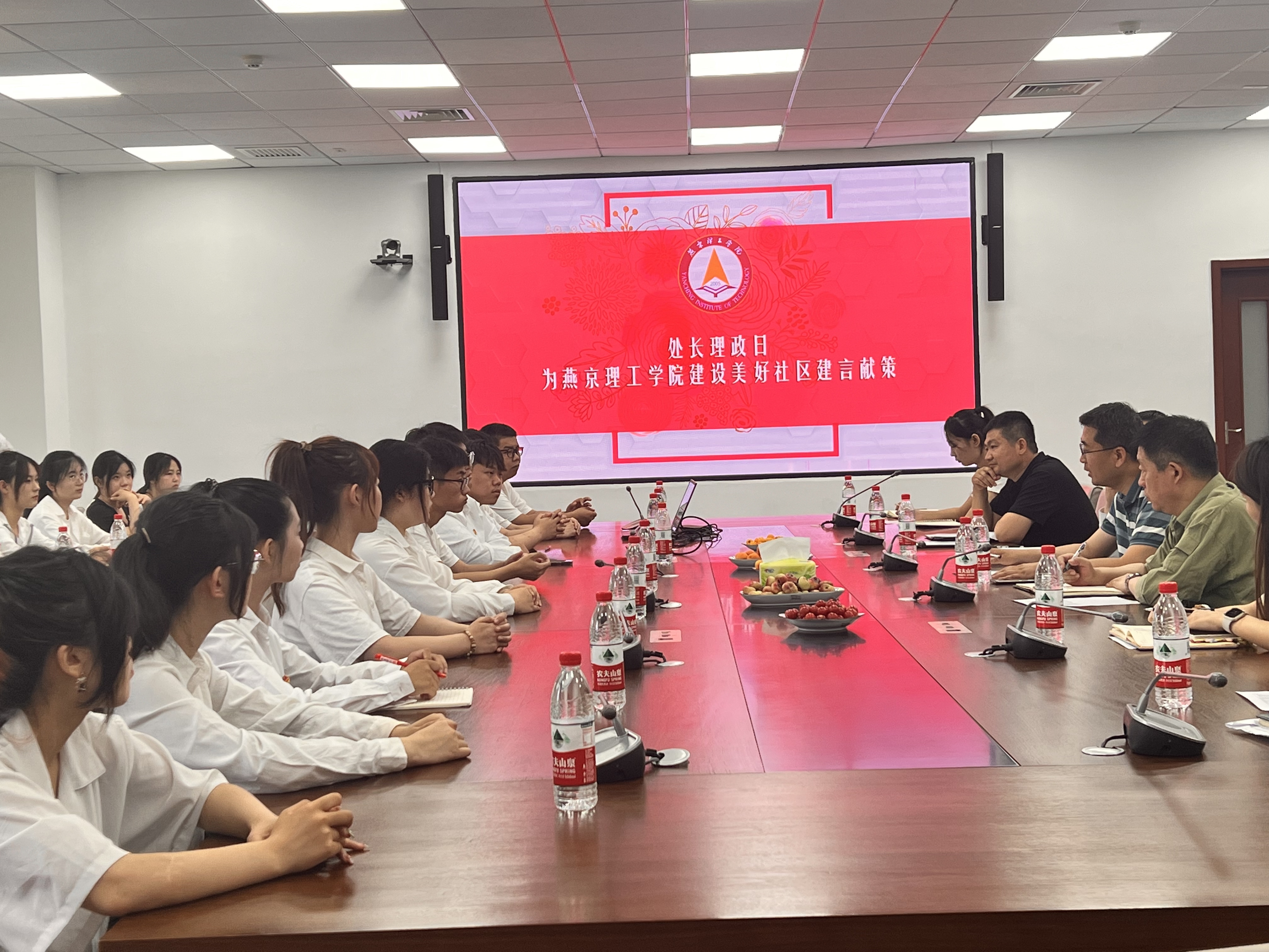 为持续推进美好生活社区建设工作,后勤服务团队立足“以服务师生为本”的理念,于6月7日联合学生处召开学生座谈会,近30名同学参加了座谈会,广泛听取同学们生活和学习中的意见、建议。学生处处长宣银参加了座谈会。