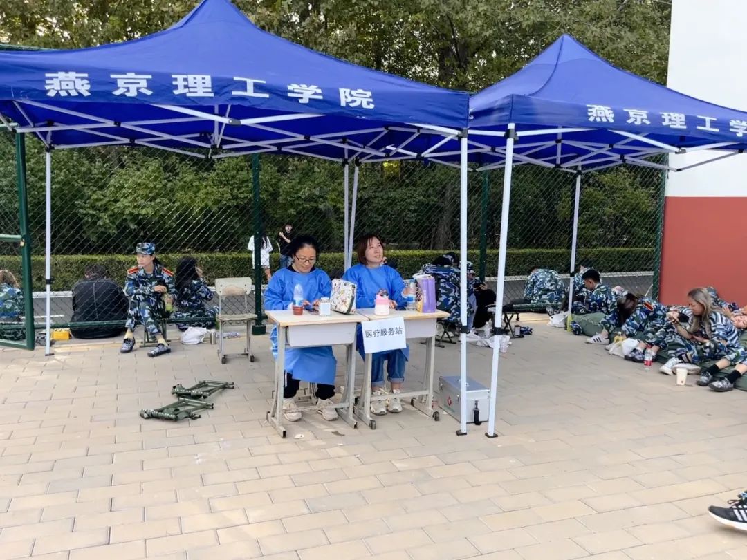 为保障军训顺利进行,后勤服务保障团队统筹安排,校医务室增加医护人员,军训现场设置医疗保障点确保每位参训师生能够在军训过程中得到及时的医疗救助。