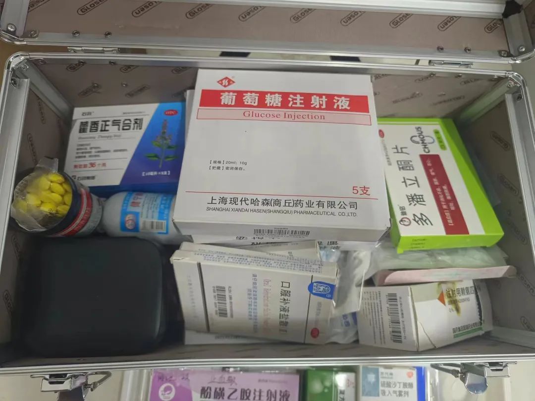 医护人员提前准备好军训所需的常用药物和应急设备,如防中暑药、口服补液盐、葡萄糖、氧气袋、碘酒、纱布、急救担架等,以及时应对军训过程中出现的各类突发状况,除此之外餐厅每天在操场准备新鲜的绿豆汤供参训师生免费享用。