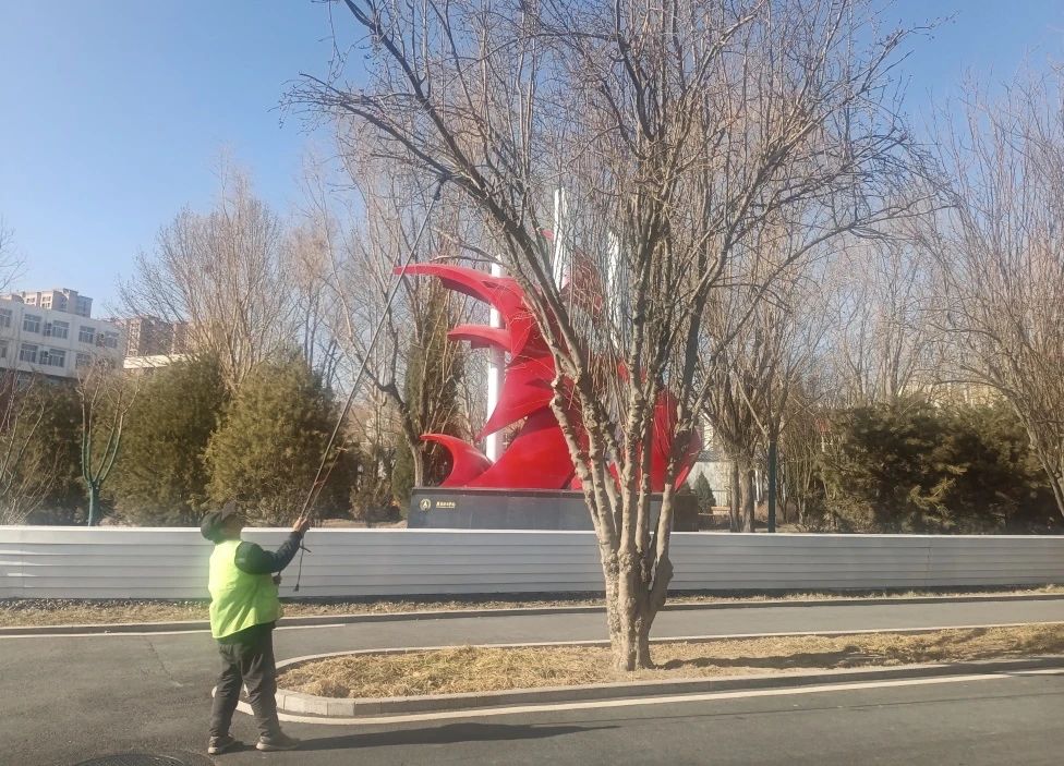 气温逐渐回升,根据不同植物的生长习性,后勤服务团队安排绿化保养人员对绿地中的花灌木、乔木、绿篱等进行整形修剪,同时,对树木的下垂枝、枯枝、病虫枝进行精细修剪,并将地被植物色块中的枯叶、杂草及时清理干净,对草坪进行疏草施肥,确保各种苗木树形优美、生长态势良好,切实提升景观效果.
