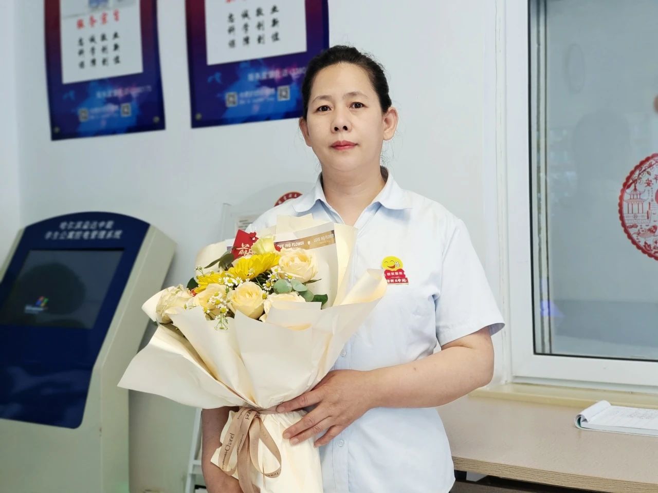 H6值班员崔晓云,于2016年入职,在工作中她爱岗敬业,对待同学认真负责,积极履行各项规章制度和工作职责,圆满完成每天的工作任务,她非常荣幸再次被评为“服务品质标兵”荣誉称号,感谢各位领导的肯定与认可。
