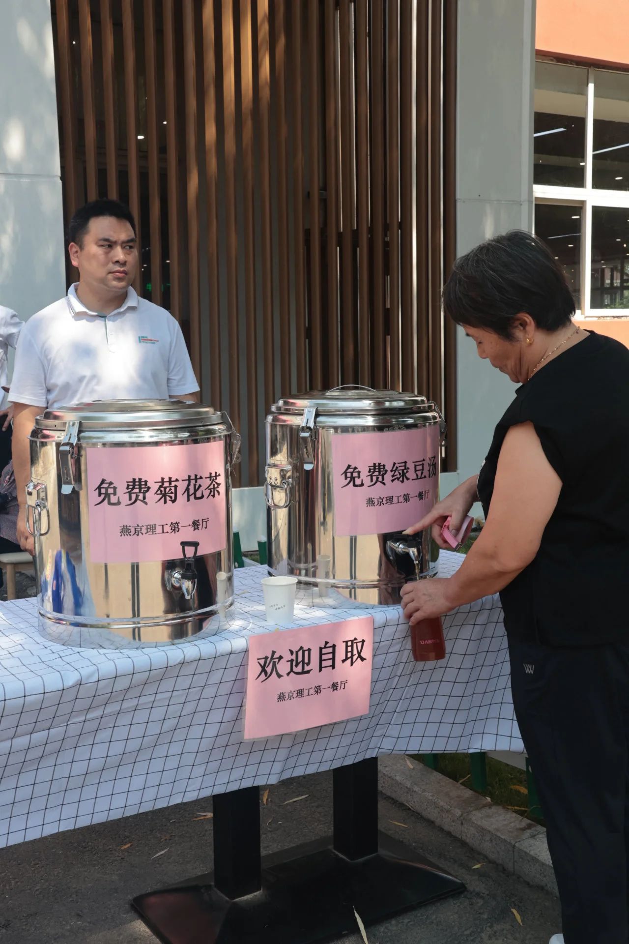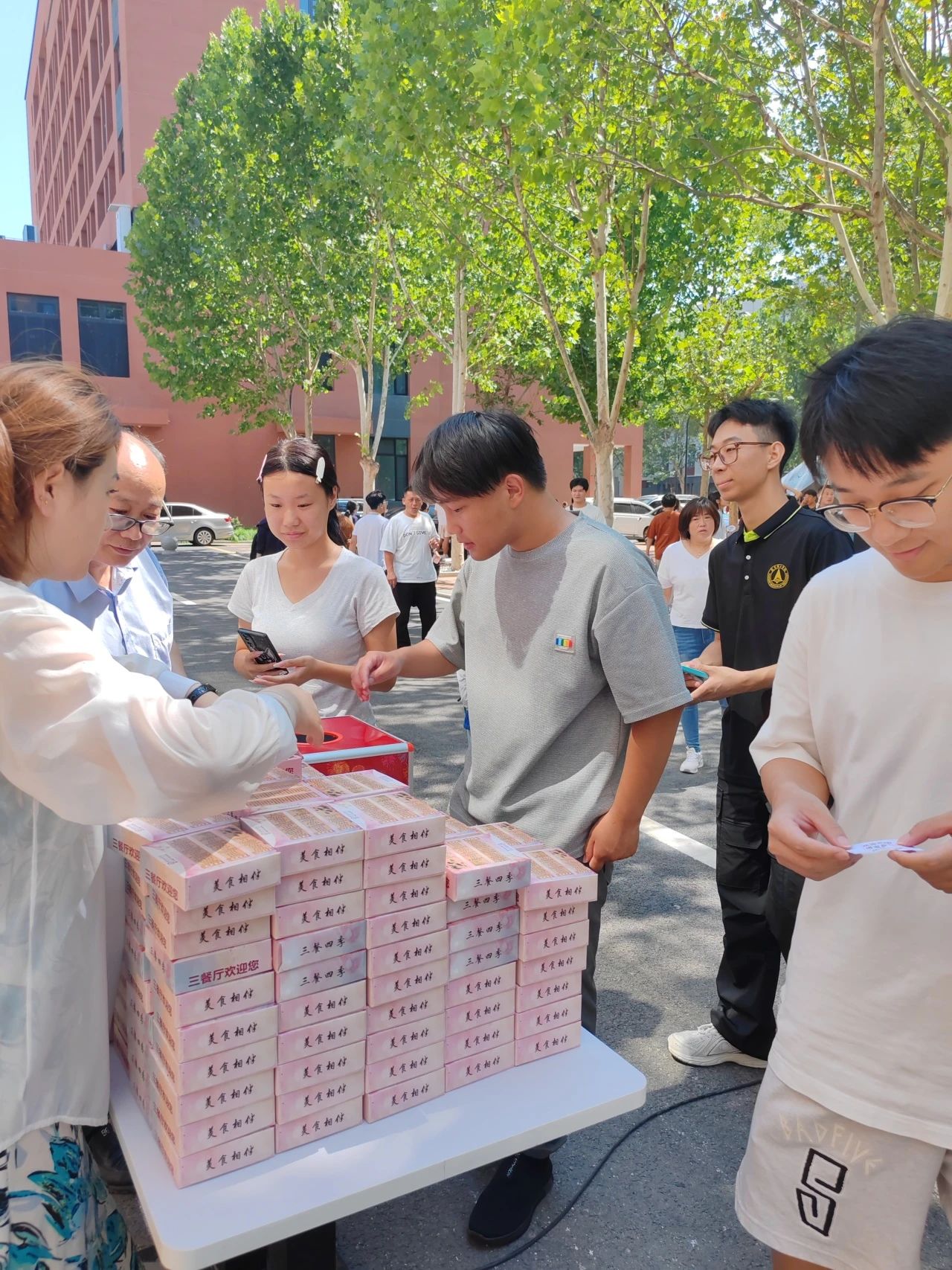 此次燕理迎新各餐厅、商户不仅组织了极具趣味性的迎新活动,还贴心的为同学们分发了免费的解暑茶水和扇子。只为同学们在燕理能够体会到家一般的关怀,让每一个同学的脸上都洋溢着喜悦的笑容,让欢声在燕理的每一个角落响起。