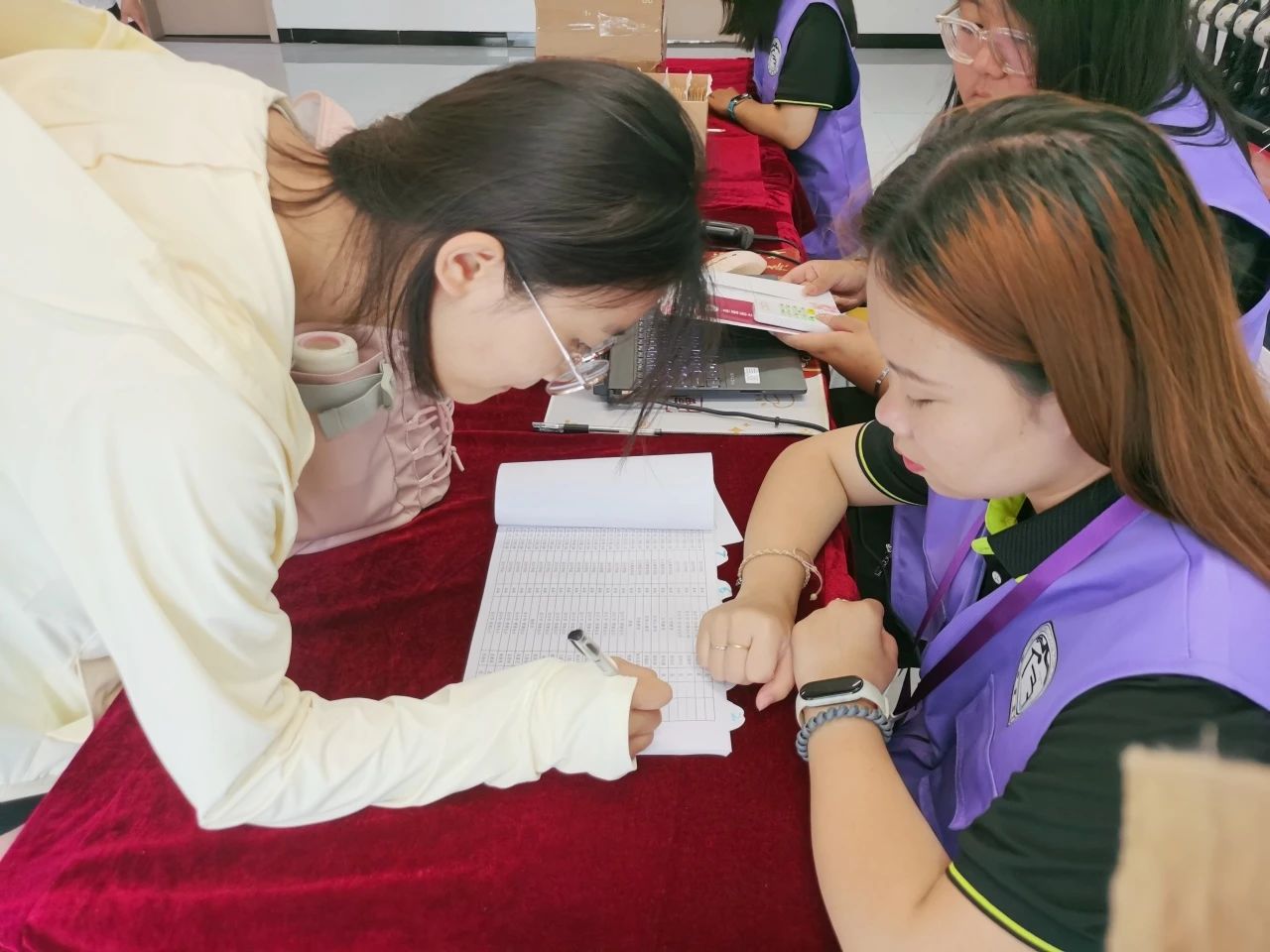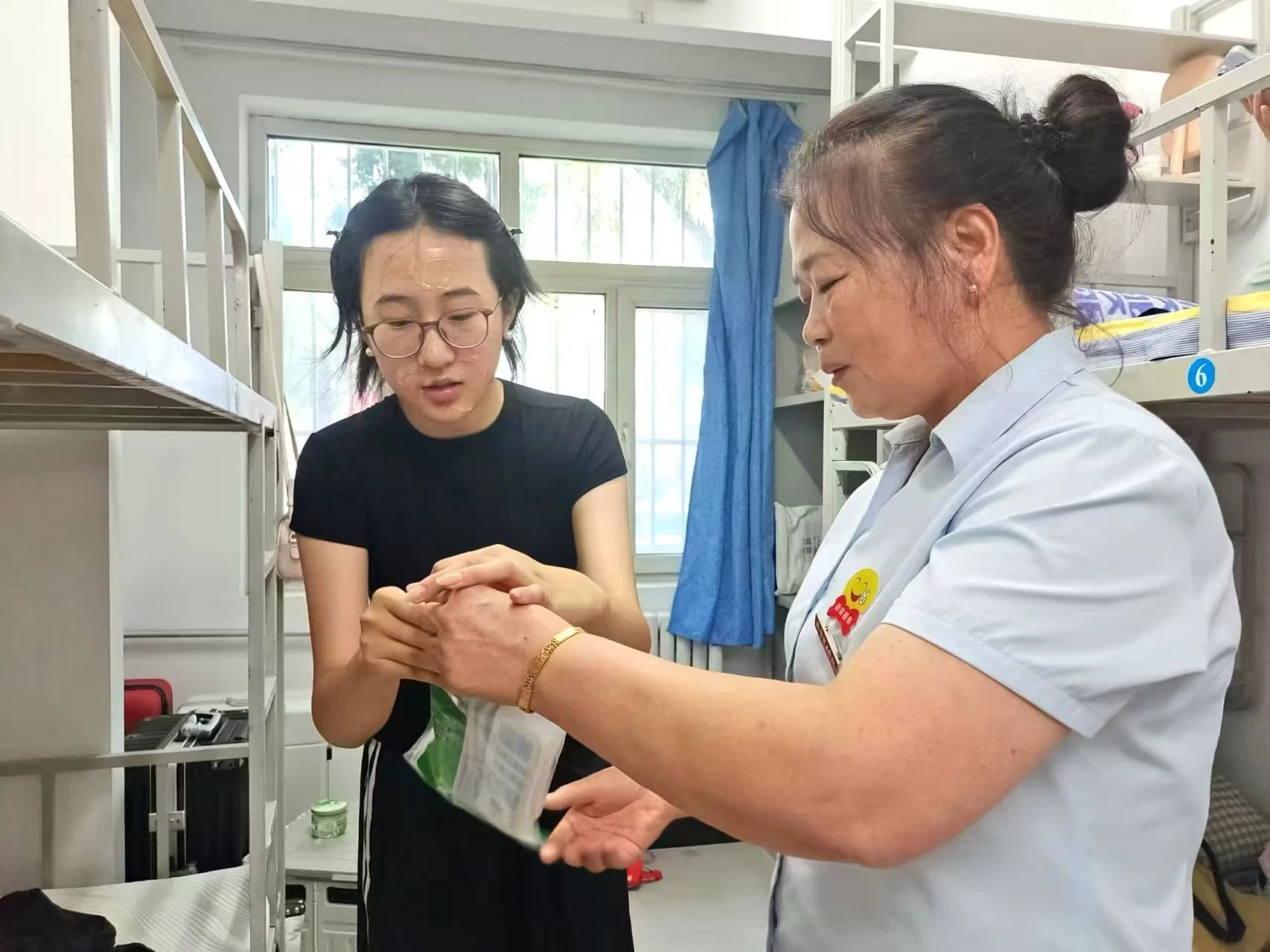 后勤楼宇服务团队利用迎新系统高效确认学生身份,审核信息,避免混乱,确保学生准确入住到相应位置。同时,值班阿姨以温暖的笑容和实际行动,如主动接过新生沉重的行李箱,传递着家的温馨与归属感;及时解答疑问,确保安全顺利入住。这些举动让初来乍到的你们感受到满满的关怀。