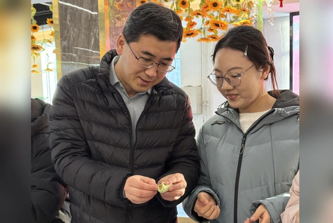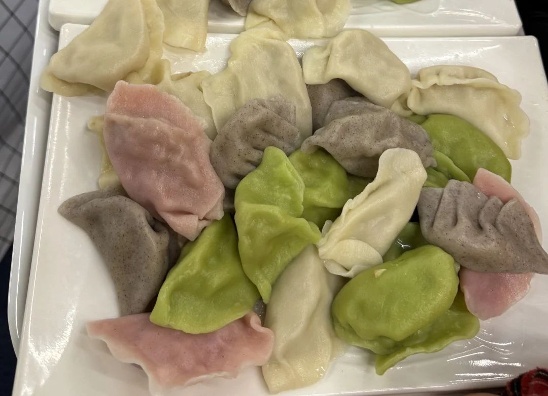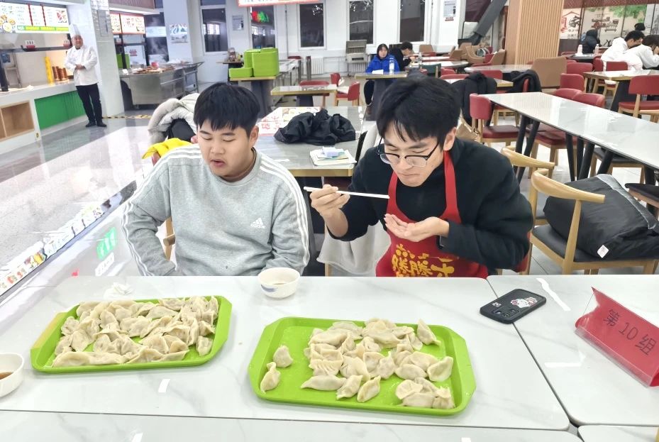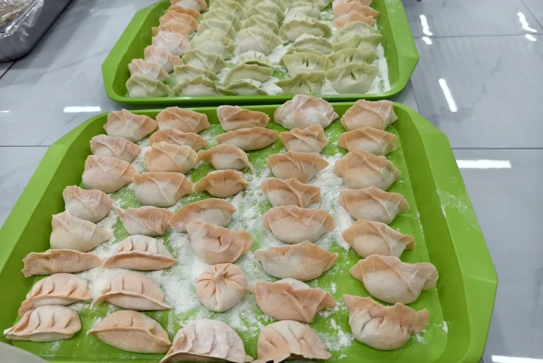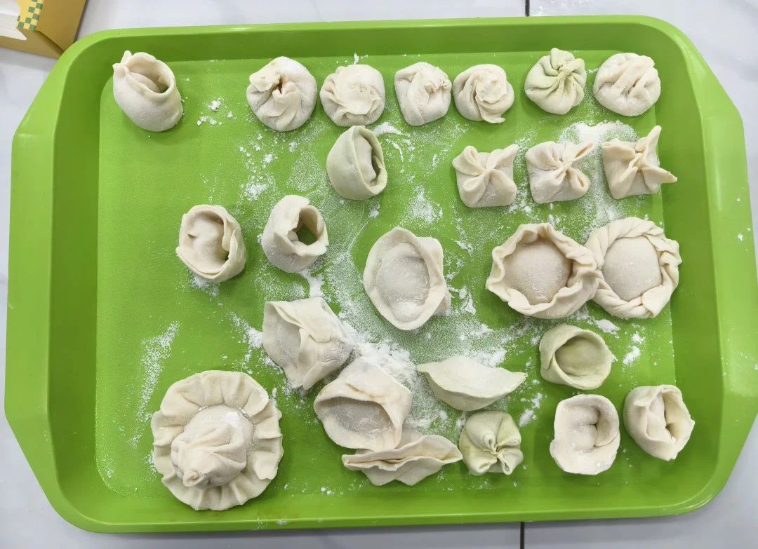 和面环节宛如一场细腻而关键的前奏,同学们纷纷挽起袖子,跃跃欲试。拿饺皮、舀馅料,手指在边缘轻巧捏褶,不多时,一个饱满圆润、形如艺术品的饺子便成型,手法娴熟。