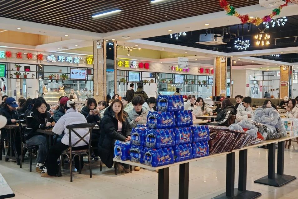 在享受美食的同时,也没有忘记与身边的人分享这份快乐,整个食堂充满了温馨与和谐的气息。