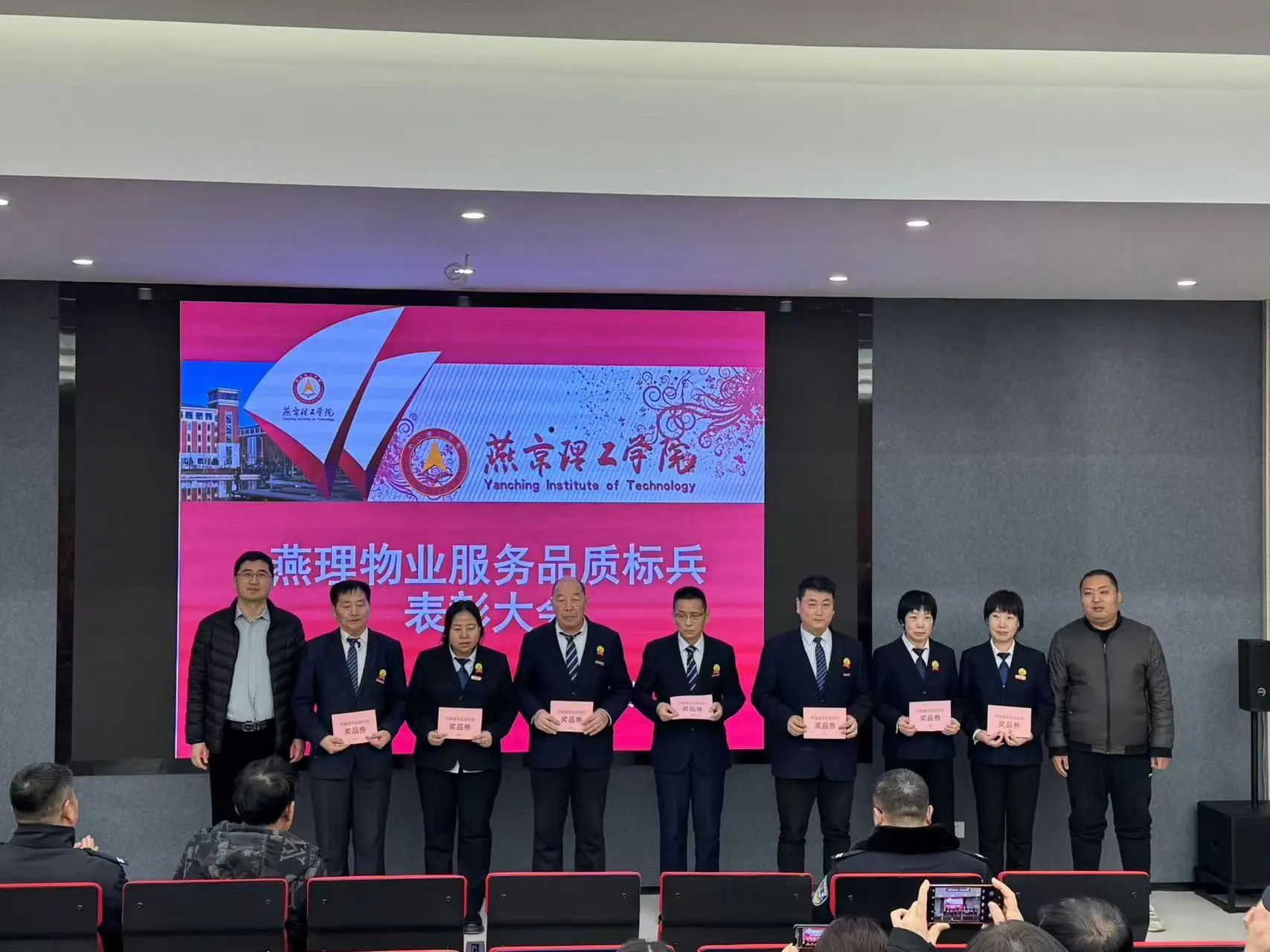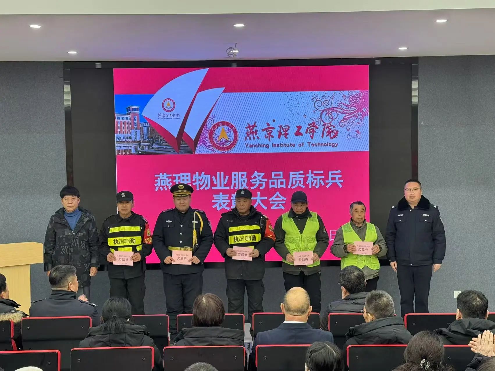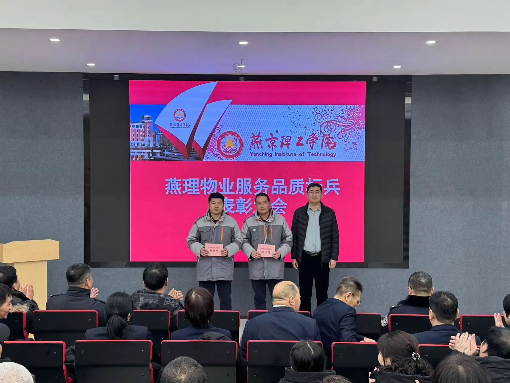 燕京理工学院对11月份物业服务品质标兵进行颁奖