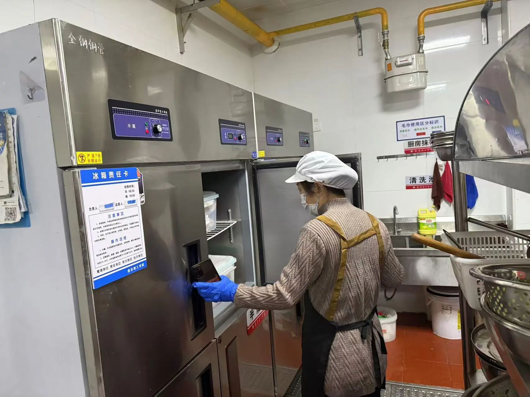 在餐厅的检查中“学生考官”们配合老师和餐厅负责人,采取交叉互换检查方式对四个餐厅的食品留样、加工制作、原材料采购存储、电梯设备使用等方面进行全方位的检查,检查期间对存在的问题进行了现场整改,保“胃”师生食品安全。