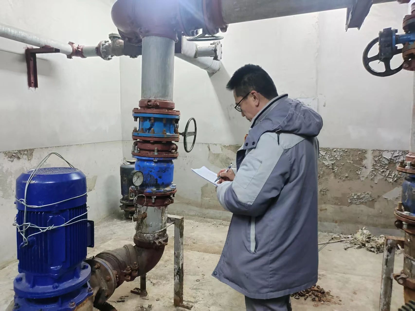 为落实校园安全隐患排查工作,保障新学习顺利开学,燕理后勤运维服务团队全面开展水、电、气、暖设施设备安全检查,分区域依次对学校水泵房、污水泵房、热力站、开闭站、箱变、各楼宇配电室等设备用房进行现场检查,重点查看了设备运行状态、安全防护设施配备情况、安全标识张贴情况及日常巡查保养记录,针对发现的隐患问题做到了及时整改、形成闭环。