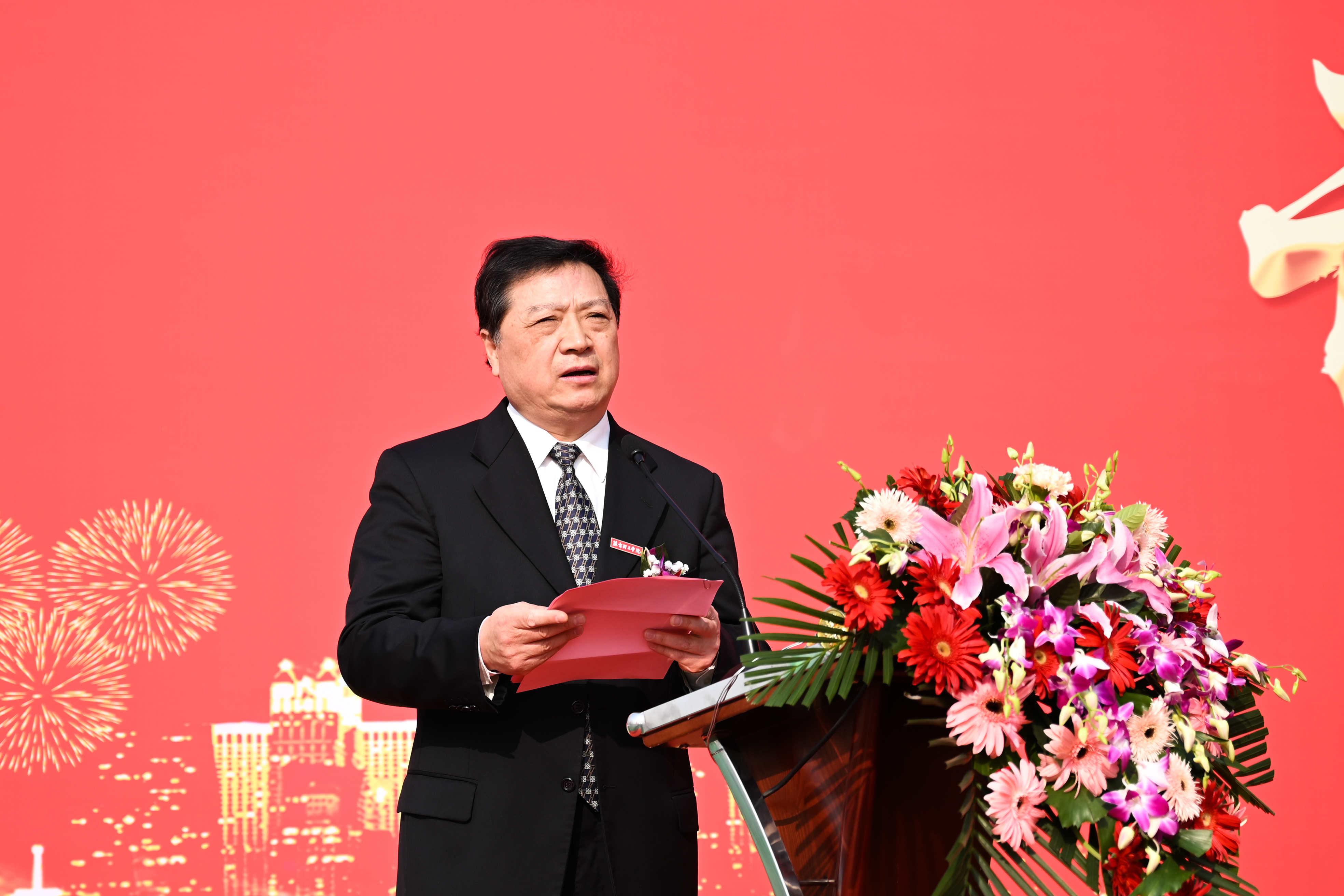 紧接着由校长杨庚宇发表致辞,他回顾了学校的发展历程,强调了教学及配套设施建设对于提升学校办学水平、优化育人环境的重要性。在此,他表示,二期工程的开工,是学校发展史上的又一里程碑,将为学校未来的发展奠定坚实的基础。
