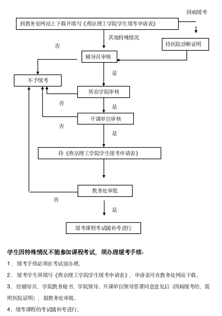 燕京理工学院学生缓考手续办理流程