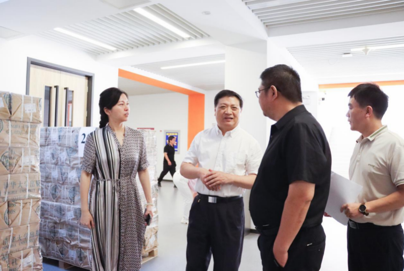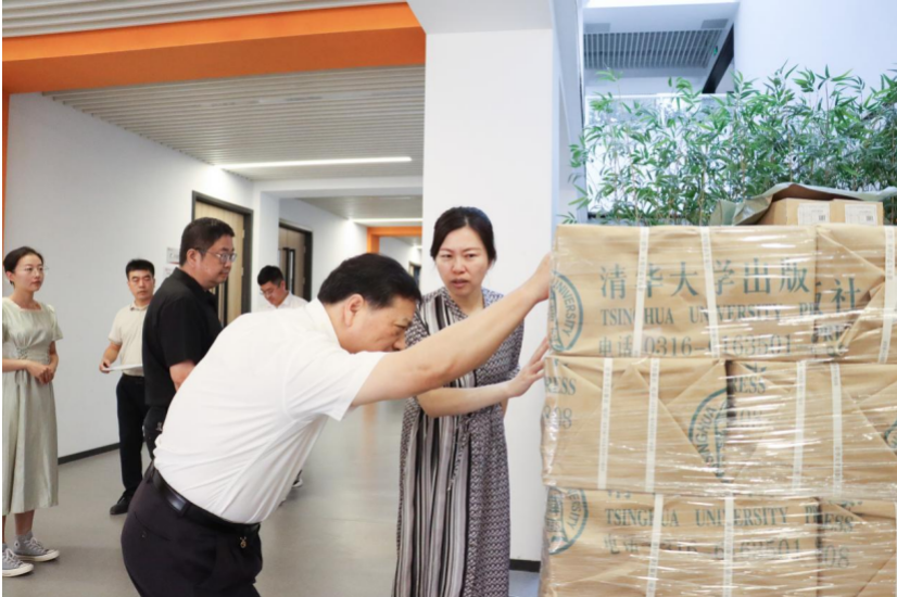 之后,校领导一行来到F教学楼,查看了学期初图书配送到校以及发放情况。根据教务处负责图书发放的李沫老师介绍,暑期全校图书统一筹划,开学前所有图书陆续配送到校。大二至大四学生教材全部分发完毕,当下正有条不紊整理大一新生教材,保证大一新生开学前师生们能领到各科教材,做到“课前到书,人手一册”。现场工作人员从搬运、拆包、分类、核对有序开展工作,按学院、班级提前统一分好并码放整齐。