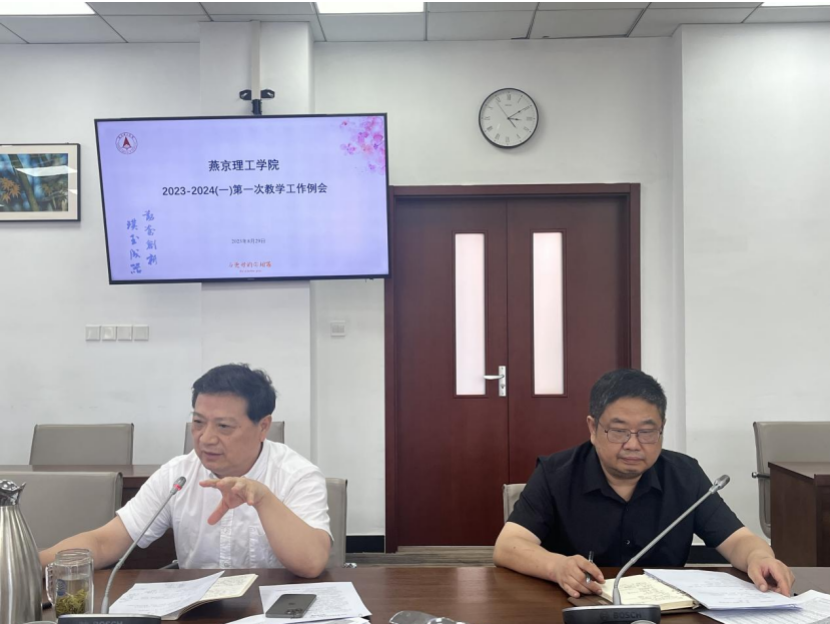 进一步明确期初重点教学工作,理清工作思路,凝心聚力,将教学工作统一到内涵式高质量发展的工作思路上来,8月29日下午,2023-2024第一学期第一次教学工作例会在综合办公楼328会议室召开。校长杨庚宇、副校长吴敏,各二级学院院长、教学副院长、国际教育学院、督导办、教务处、学生处等相关人员参加了会议。会议由副校长吴敏主持。