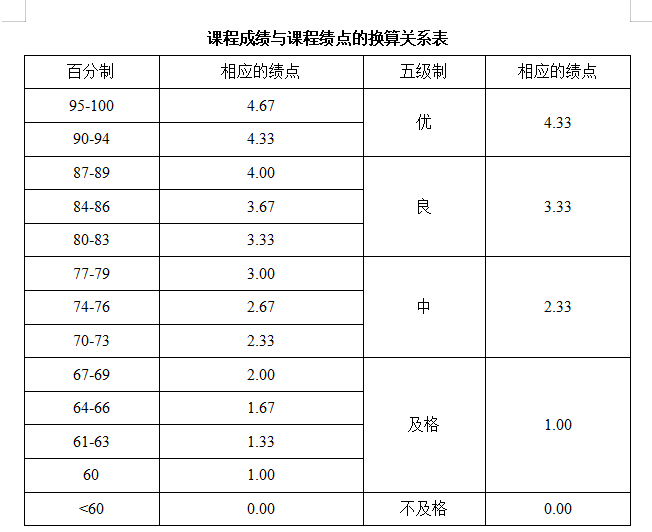 考试课程以百分制记分,成绩计入GPA (平均学分绩点)。