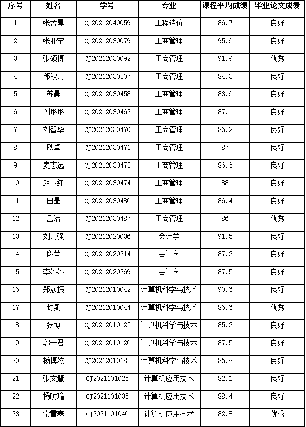 根据《燕京理工学院高等学历继续教育优秀毕业生评选办法》,通过个人申报、继续教育学院综合评定,现拟评选以下23名同学为2023届高等学历继续教育优秀毕业生。