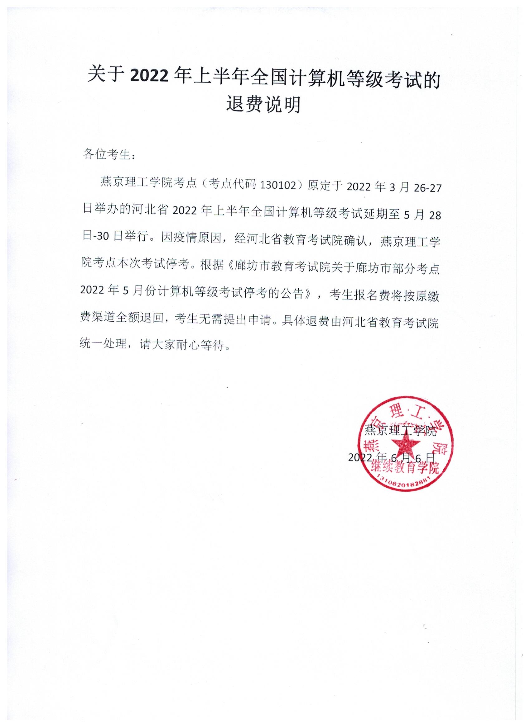 关于2022年上半年全国计算机等级考试的退费说明