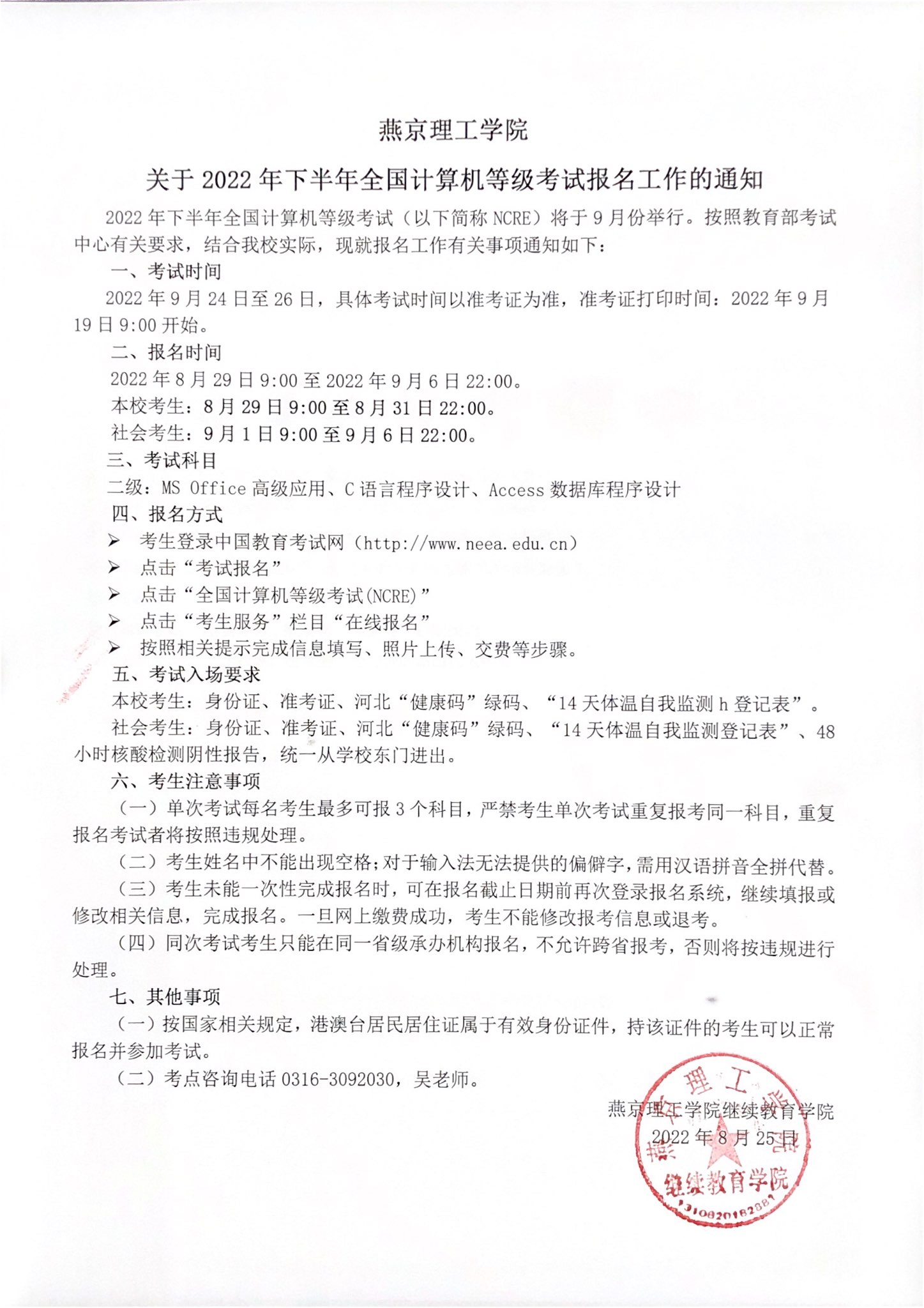 燕京理工学院关于2022年下半年全国计算机等级考试报名工作的通知