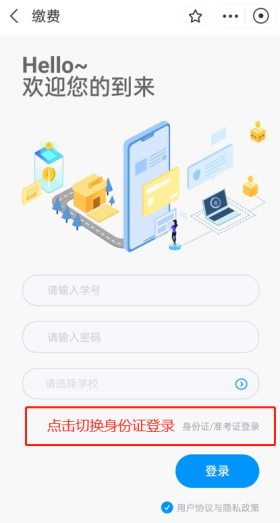 第二步:右下角点击身份证/准考证登录方式登录,输入本人身份证号,选择学校“燕京理工学院”