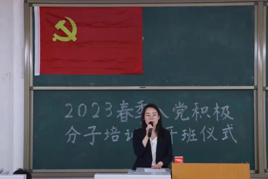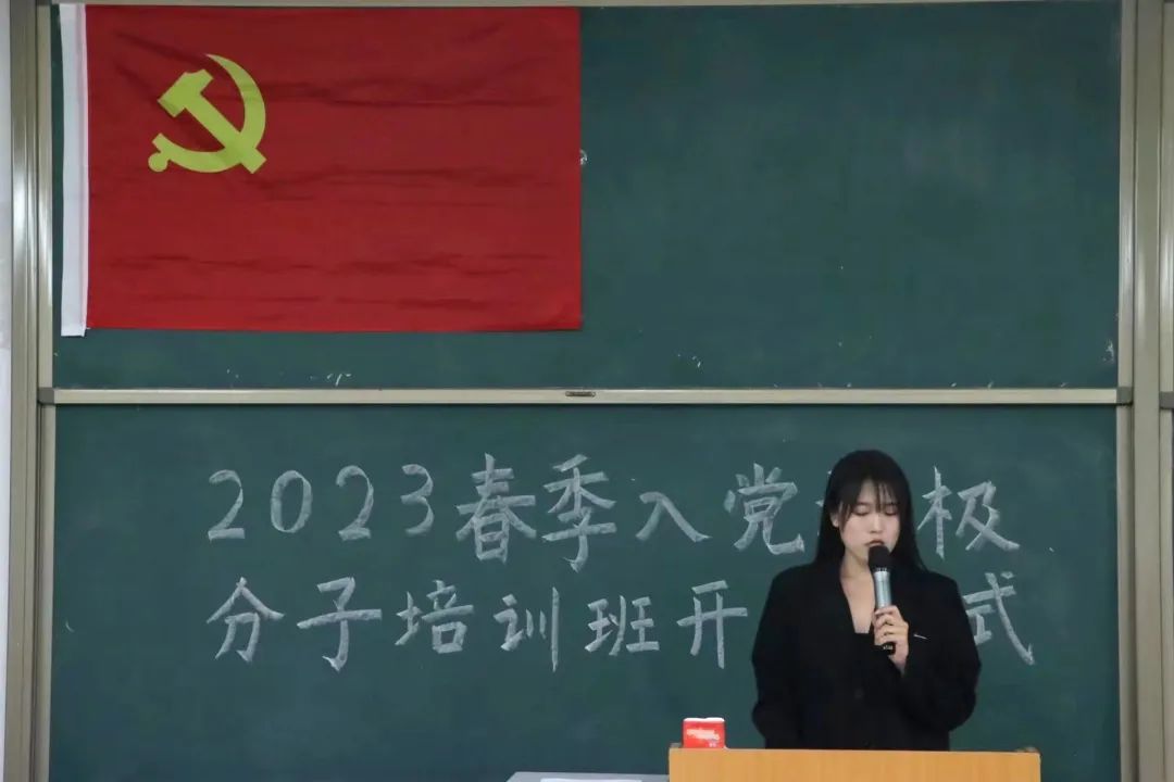 会议伊始,全体人员怀着无比自豪的心情肃然而立,奏唱国歌。伴随着慷慨激昂的乐章,2023年春季入党积极分子培训班也拉开了帷幕。老学员代表宋家欢和新学员代表贾思淇相继发言。宋家欢同学讲述了党课对自己的影响和改变,并号召广大学员们认真学习,仔细领悟党课精神,坚定不移听党话、跟党走,继承燕理传统,赓续红色血脉,怀抱梦想又脚踏实地,敢想敢为又善作善成,立志做有理想、敢担当、能吃苦、肯奋斗的新时代好青年,让青春在全面建设社会主义现代化国家的火热实践中绽放绚丽之花;贾思淇同学明确表明自己入党的初心与决心,向党组织承诺,珍惜本次的学习机会,树立理想信念,坚决拥护党的方针政策,时刻听党话、跟党走,不断提高自己,完成各项任务。