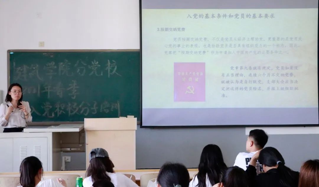 5月24日,建筑学院分党校于M509举办2021年春季入党积极分子培训会第四期。建筑学院党总组织委员李雅静老师为本次培训主讲老师,100名建筑学院入党积极分子参加了本次培训。