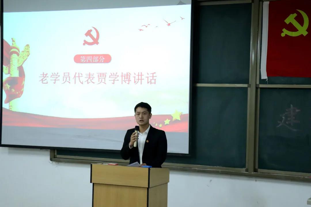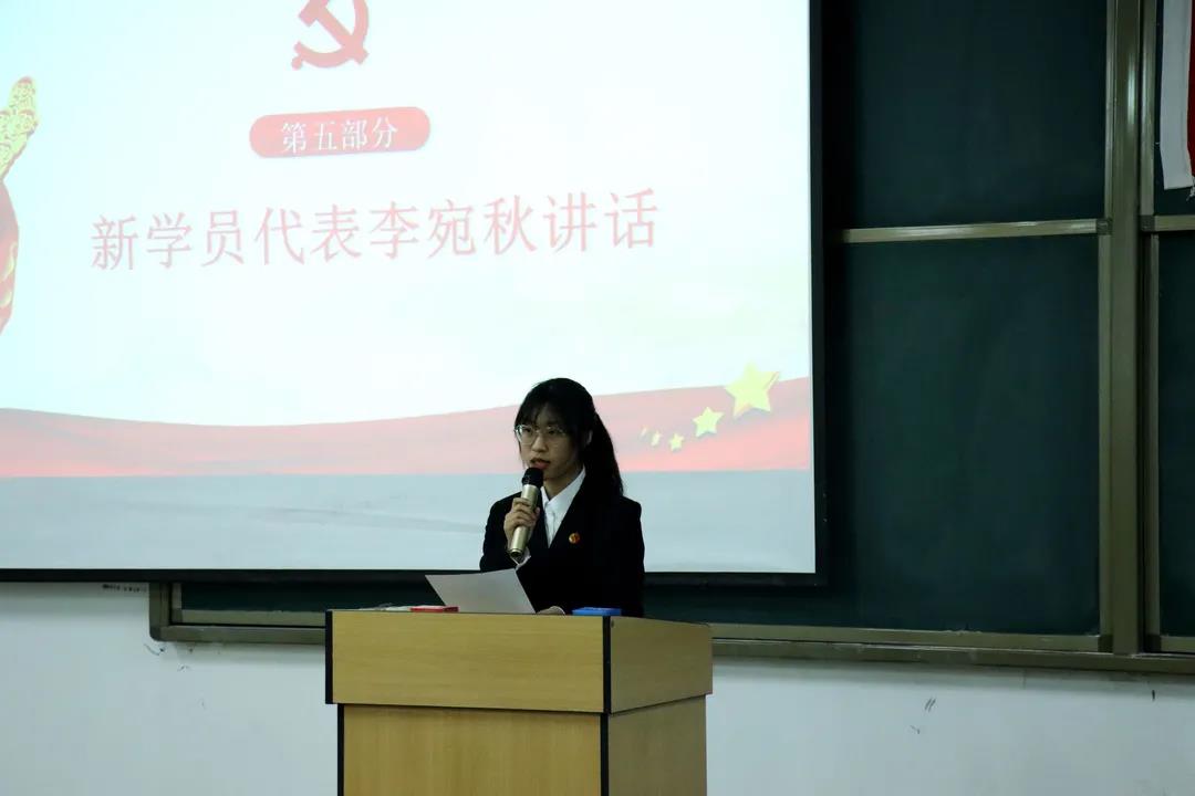 随后,老学员代表工程1902班贾学博和新学员代表建筑2001班李宛秋相继发言。贾学博同学明确表明了自己的入党使命,他说到:“作为一名新时代的新青年,我们要深刻学习党的历史,不忘初心牢记使命,始终坚持中国共产党的领导,一切为了人民,从群众中来,到群众中去,为中国人民谋幸福,为中华民族谋复兴。”李宛秋同学代表新学员郑重承诺:“我们将以最饱满的热情,最全面的投入,最实际的行动来完成我们最渴望的党课学习”。李宛秋同学短短几句的言语表现出学员们对党组织的崇高敬意,彰显了学员们加入党组织的迫切期待与坚定决心。