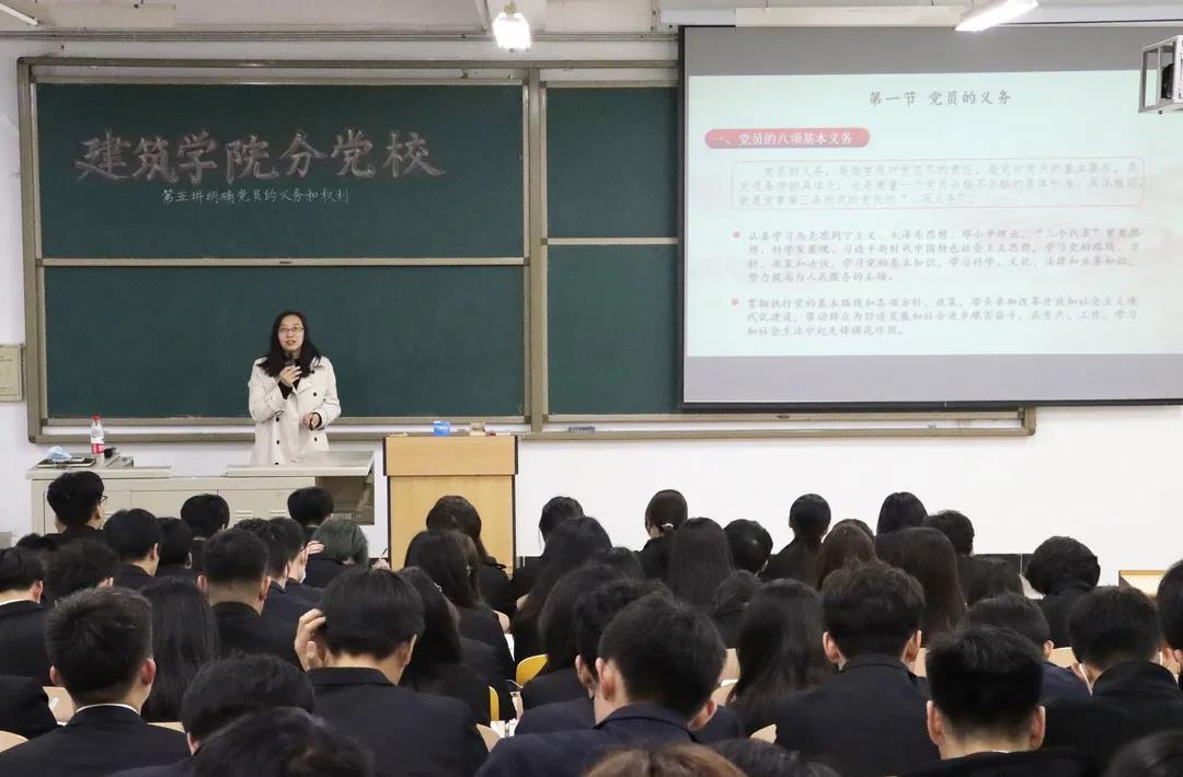为加强对建筑学院入党积极分子的培养和教育,提高入党积极分子的政治理论水平,11月8日,燕京理工学院建筑学院分党校在D201召开了入党积极分子培训班第五讲“鸟有双翼才能飞、车有两轮始得行”——明确党员的义务与权利。建筑学院19级辅导员张巧妹老师作为第五讲主讲人进行知识培训,101名学员全部出勤第五讲课程。
