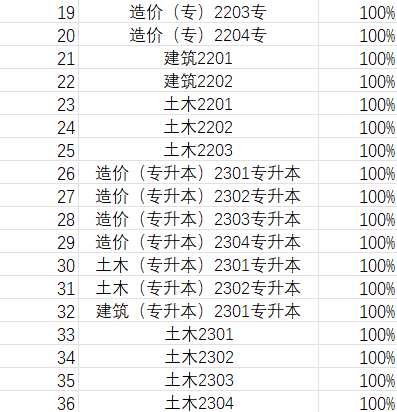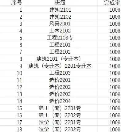 根据参与率综合统计,在上一期的“青年大学习”网上主题团课中,以下班级同学们表现最积极,班级参与率高达100%。