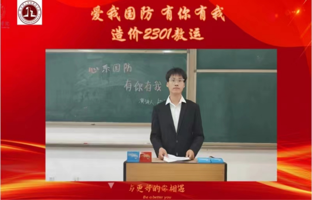 《爱我中华,强我国防》的演讲将梁启超在《新民说》中的“若无国防,则国难屡起,民将不得安其业”的国防重要性展现的淋漓尽致;《爱我国防,有你有我》的演讲更是指出了国防之事是并非一人一军便可完成的,全体中华儿女都应同心协力,不断加强国防意识,为我国的国防事业添砖加瓦;除此之外,其他同学的演讲分享也深刻诠释了对“爱我国防”的深刻理解,增强了同学们的国防观念,呼吁同学们学习传承党的优良传统,共同努力,不负时代,不负韶华。