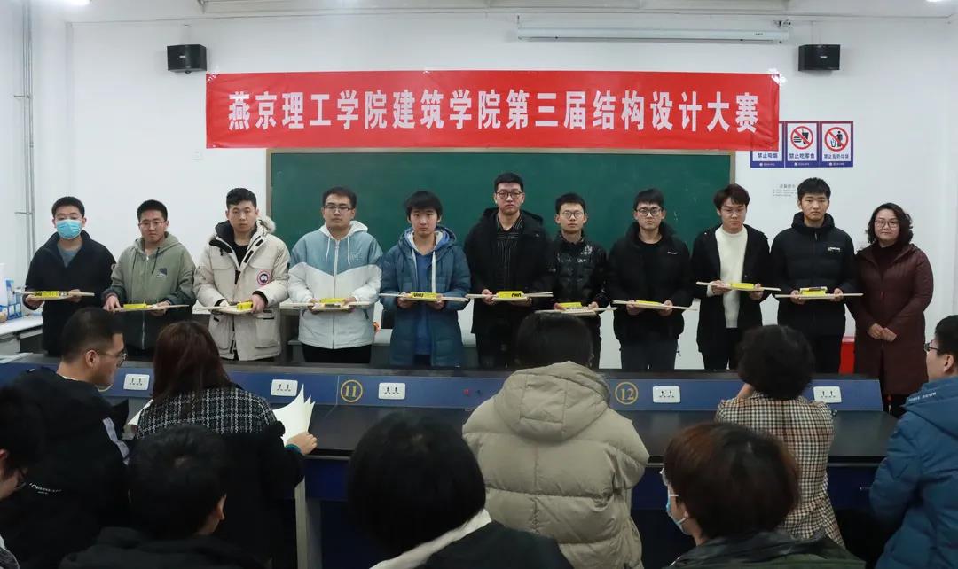 为了落实我校培养应用型人才的宗旨,帮助学生做到理论与实践相结合,提高学生创新能力,建筑学院于2021年12月8日实训楼103进行燕京理工建筑学院第三届结构设计竞赛。宋丽辉院长、郭奕宏老师、韩会平老师、权集老师、赵怡丹老师、戴承良老师、席晓辉老师、陈猛老师出席本次活动。陈猛老师为主持人,19级土木工程全体学生参加本次比赛。