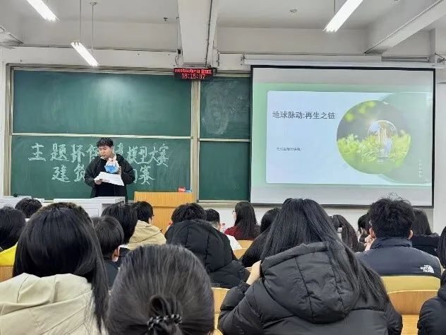 为深入贯彻习近平新时代中国特色社会主义思想,以实际行动积极培育和践行社会主义核心价值观,同时增强学生的环保意识。2025年3月7日建筑学院团总支志愿者实践部于综合楼 201 开展“传承雷锋精神·共创环保新理念”主题环保创意模型大赛。参加本次大赛的评委有程馨蕊老师以及两名建筑学专业的同学。