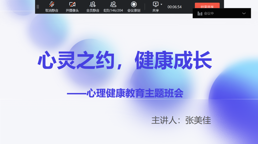 建筑学院张美佳老师则重点分析疫情居家给学生带来的心理健康影响,通过指出现存共性问题来引导学生说出个人存在的心理问题,同时引导学生们相互帮助,为同学提出解决问题的方法,通过进行心理健康教育,激发同学们居家期间认真学习,提升自我,开发个人潜能的可能性。提升了同学们对当前环境的适应能力,促进学生全面发展。