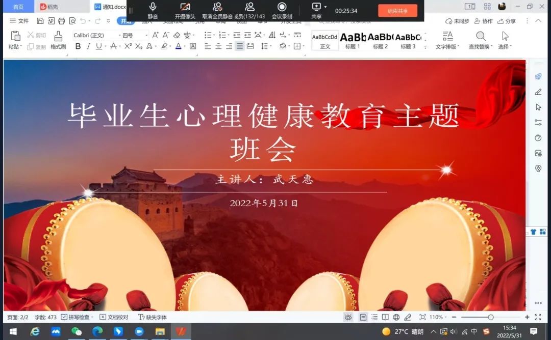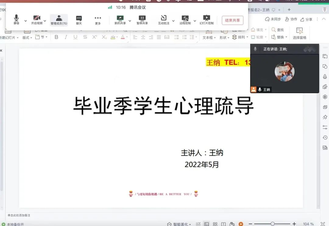 此次班会活动以各辅导员为单位开展,建筑学院辅导员张会楠老师着重强调了心理健康的重要性,以及在疫情期间如何保持心理健康并且缓解心理压力,张会楠老师建议同学们可居家进行适量运动,如有问题及时向辅导员寻求帮助,进行心理辅导。促进了同学们维护自身的心理健康,建立自信,增强心理素质,缓解因疫情带来的焦虑情绪。