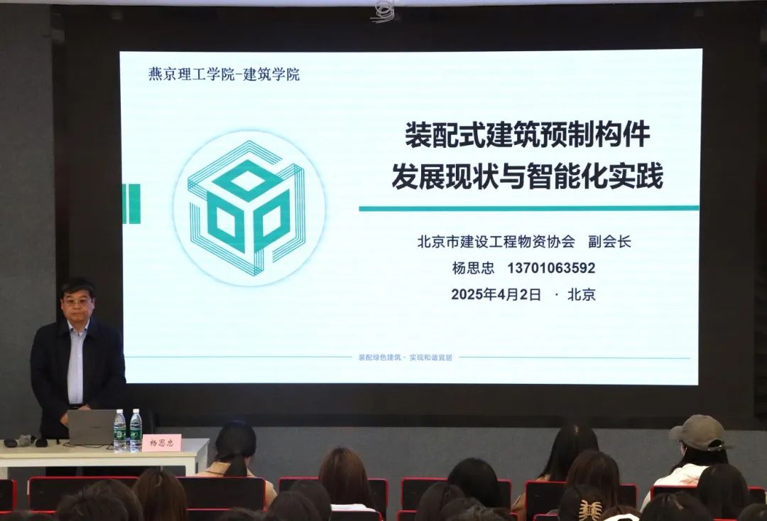 为了让学生们全面了解装配式建筑预制构件的发展态势,提高学生们的智能化分析能力,激发创新能力,鼓励学生们探索工程造价与多学科结合的创新思路,在鲁班智能建造产业学院的支持下建筑学院工程造价教研室于2025年4月2日在M101举办专家讲座。邀请到北京市建设工程物资协会副会长杨思忠教授担任主讲嘉宾,前来参加此次讲座的有工程造价教研室全体教师及2023级本科造价专业学生。