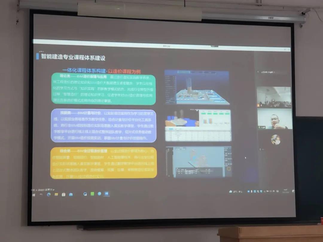 朱老师结合最新政策形势,分享了智能建造专业现状及建筑业今后发展趋势,指出随着国家政策的不断推出,以信息化融合工业化形成数字建造逐渐提升到智能建造、智慧建造是未来发展的方向。随后从行业数字化业务模式变化针对人才培养进行介绍,从一体化课程体系构建、教学方法、师资、智慧教室、实践基地等方面进行了深入分析。