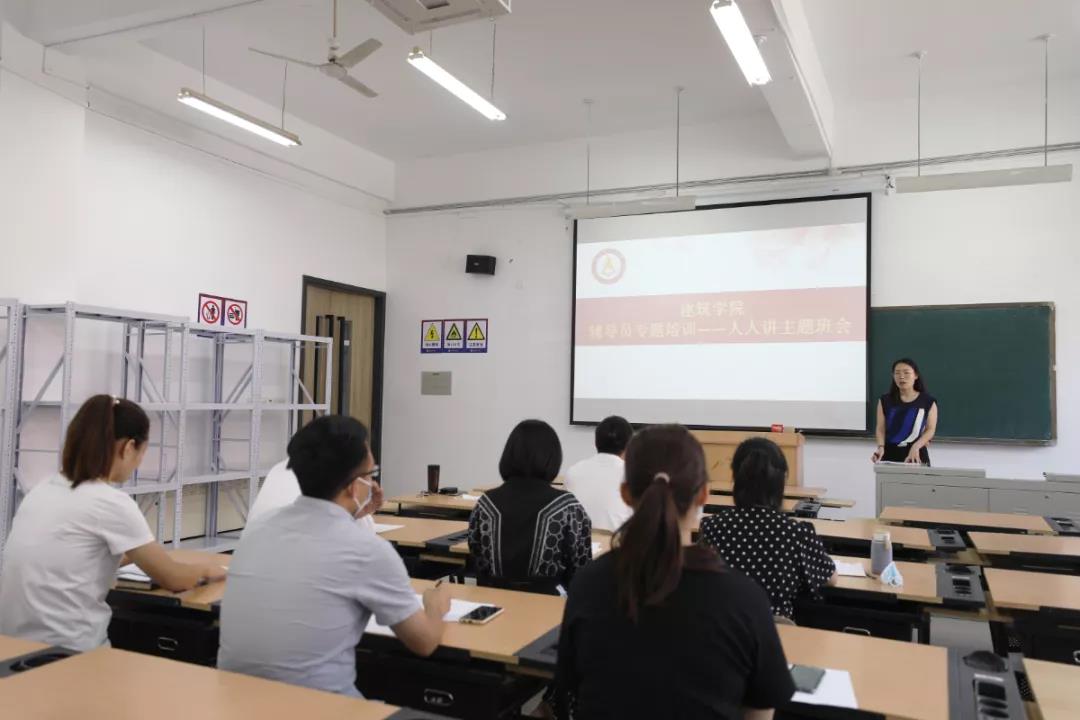 为全面贯彻党的教育方针,落实立德树人的根本任务,提高教师业务水平和教育教学能力,加强辅导员素质建设,8月26日下午,建筑学院开展了辅导员专题培训——人人讲主题班会,由辅导员李雅静老师主持,建筑学院党总支书记郭磊,建筑学院辅导员武天惠、王晶、张会楠、付强、张巧妹、张佳玲、张美佳老师参加此次培训。