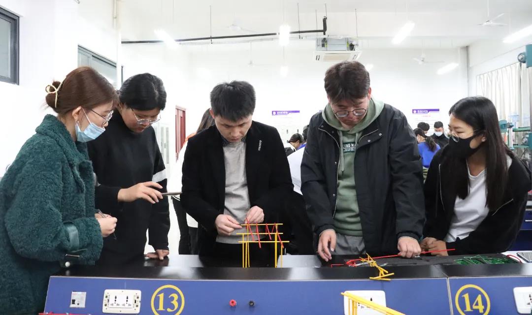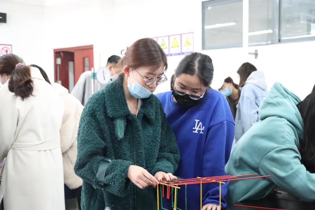 李文静老师邀请了北京一砖一瓦的袁老师为大家进行培训,讲解了具体操作流程;全部参赛人员3人为一组,以组为单位进行钢筋绑扎的练习,锻炼了大家的动手能力以及团队合作的意识。