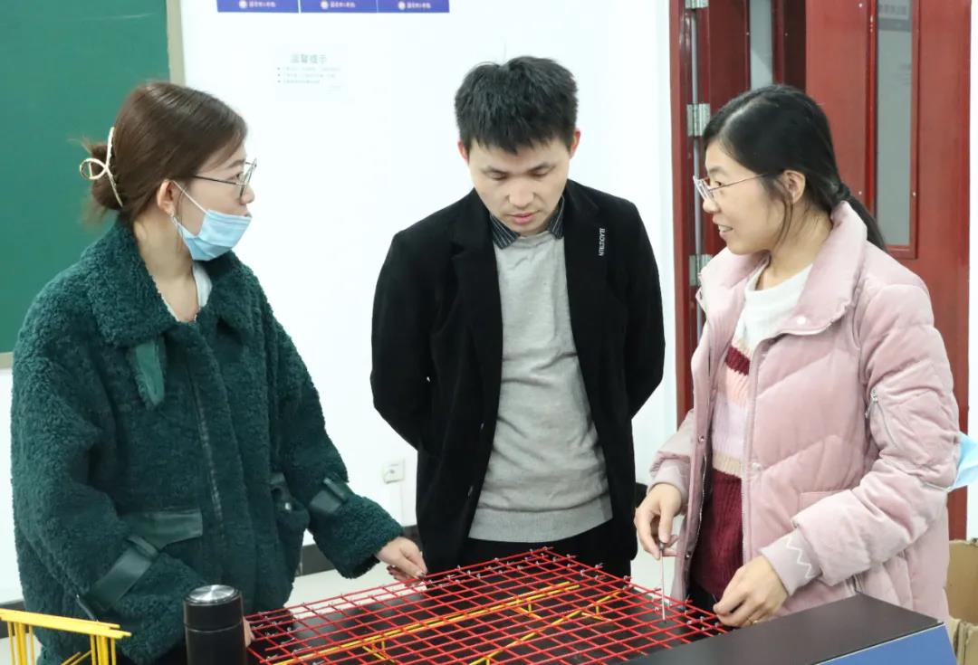 钢筋平法与应用技能大赛包含客观题、主观题、钢筋绑扎实操三个部分,目前已完成客观题考试。为让同学们学习更专业细致的绑扎钢筋相关知识,做好赛前准备,并针对性的运用在所创作的作品中,李文静老师邀请了北京一砖一瓦的袁老师为大家进行培训,讲解了具体操作流程;全部参赛人员3人为一组,以组为单位进行钢筋绑扎的练习,锻炼了大家的动手能力以及团队合作的意识。